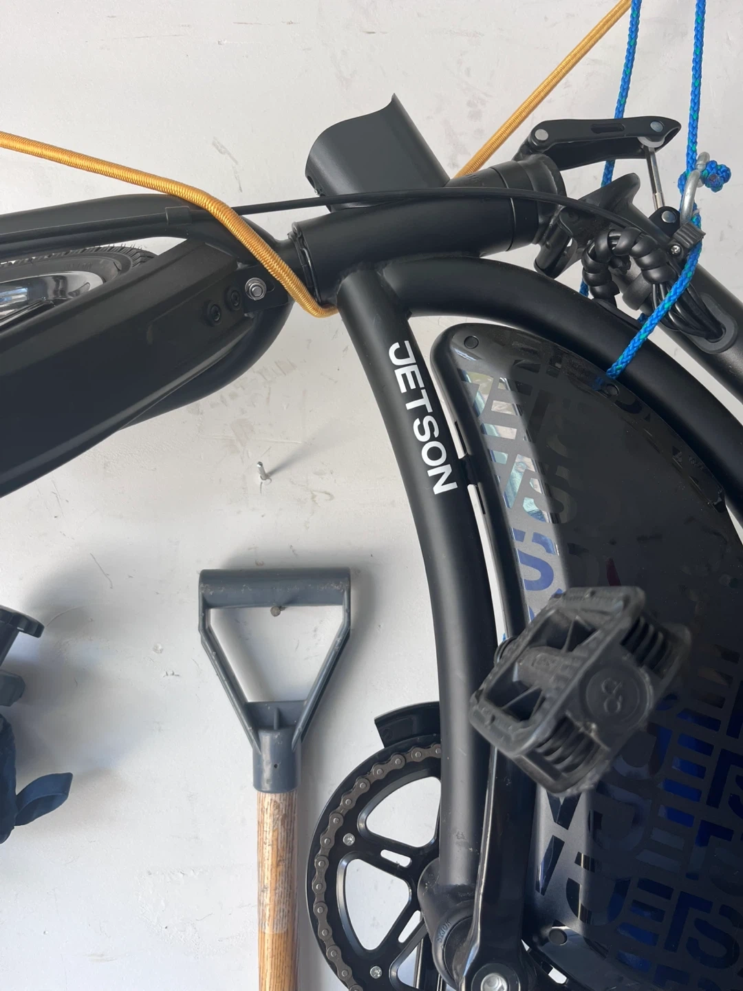 Jetson electric folding bike, black. Like new, rarely used. It features disc brakes and a foldable frame for easy storage. This bike is great for commuting or casual rides. Includes charger.