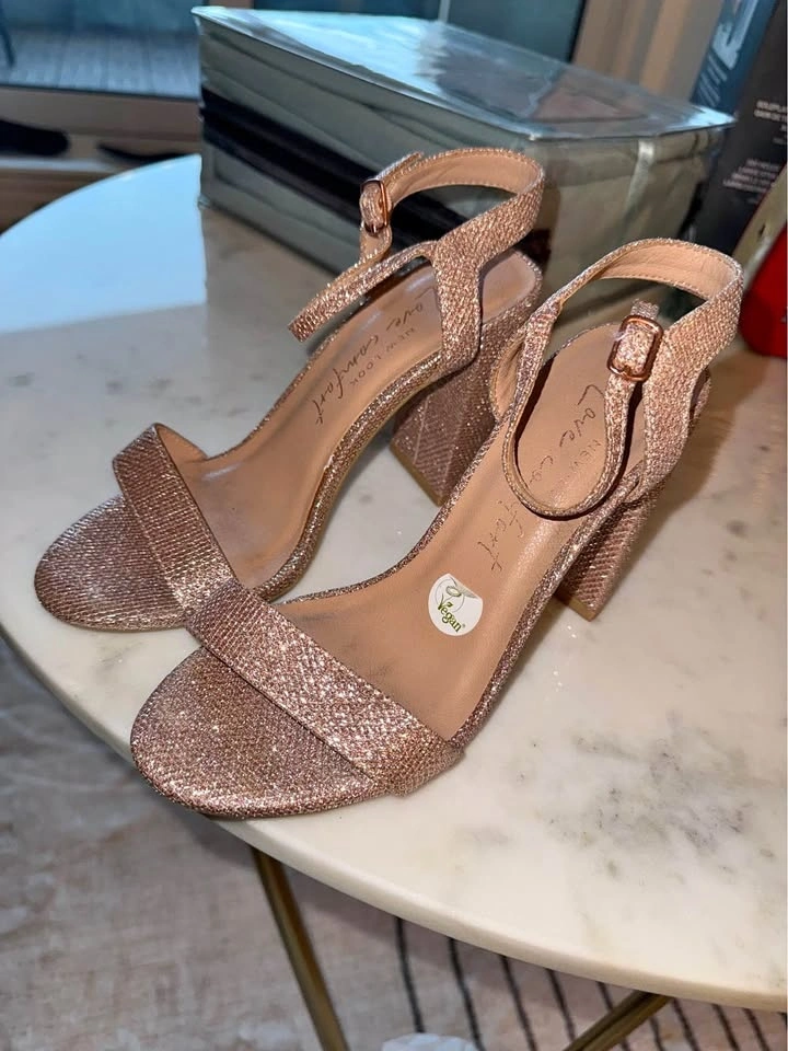 – NEW LOOK Rose gold glitter block-heel sandals