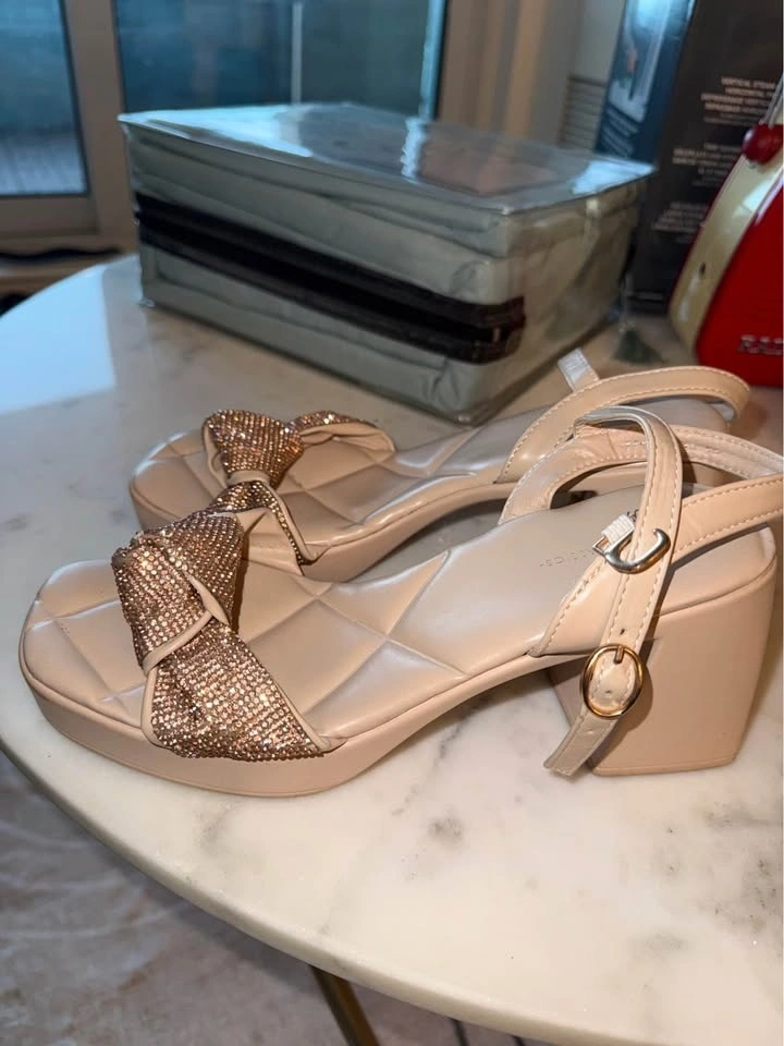 – Nude bow block-heel sandals