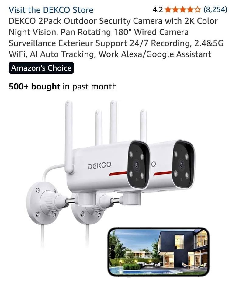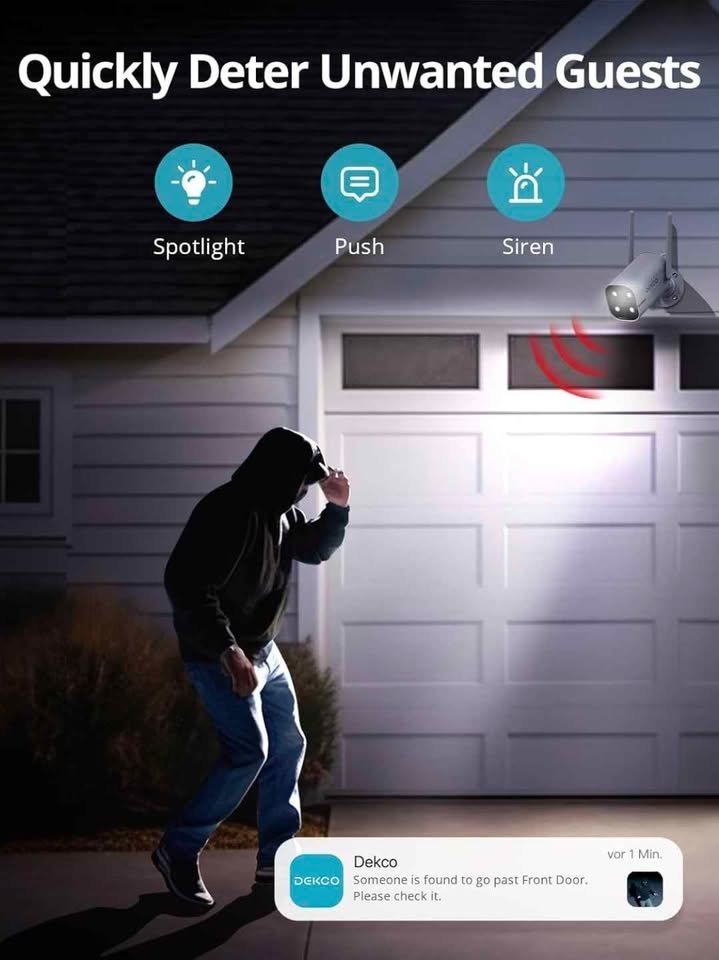 DEKCO 2Pack Outdoor Security Camera with 2K Color Night Vision,