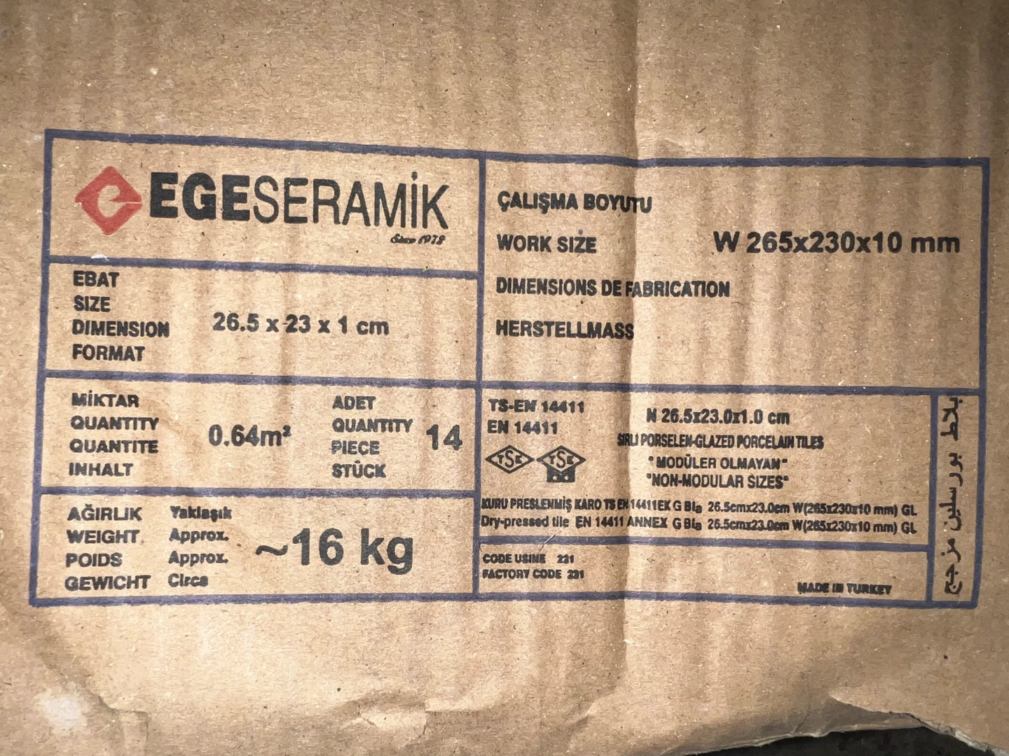 1 / 21 / 2Buy & Sell3 boxes of Porcelain Tile3 boxes of Porcelain Tile$130EGE Seramik Porcelain Hexagon Tile 3 boxes with 14 tiles per box (42 total) ConditionNewWHERE TO MEETTop of Sherman AccessView MapSELLERPattiLawfield595 reviews0 chats·0 favorites·15 viewsSEND CHAT TO SELLERHi Patti! I’m interested in your listing.Hi Patti! I’m interested in your listing.Get the Karrot app to chatSign In to chat