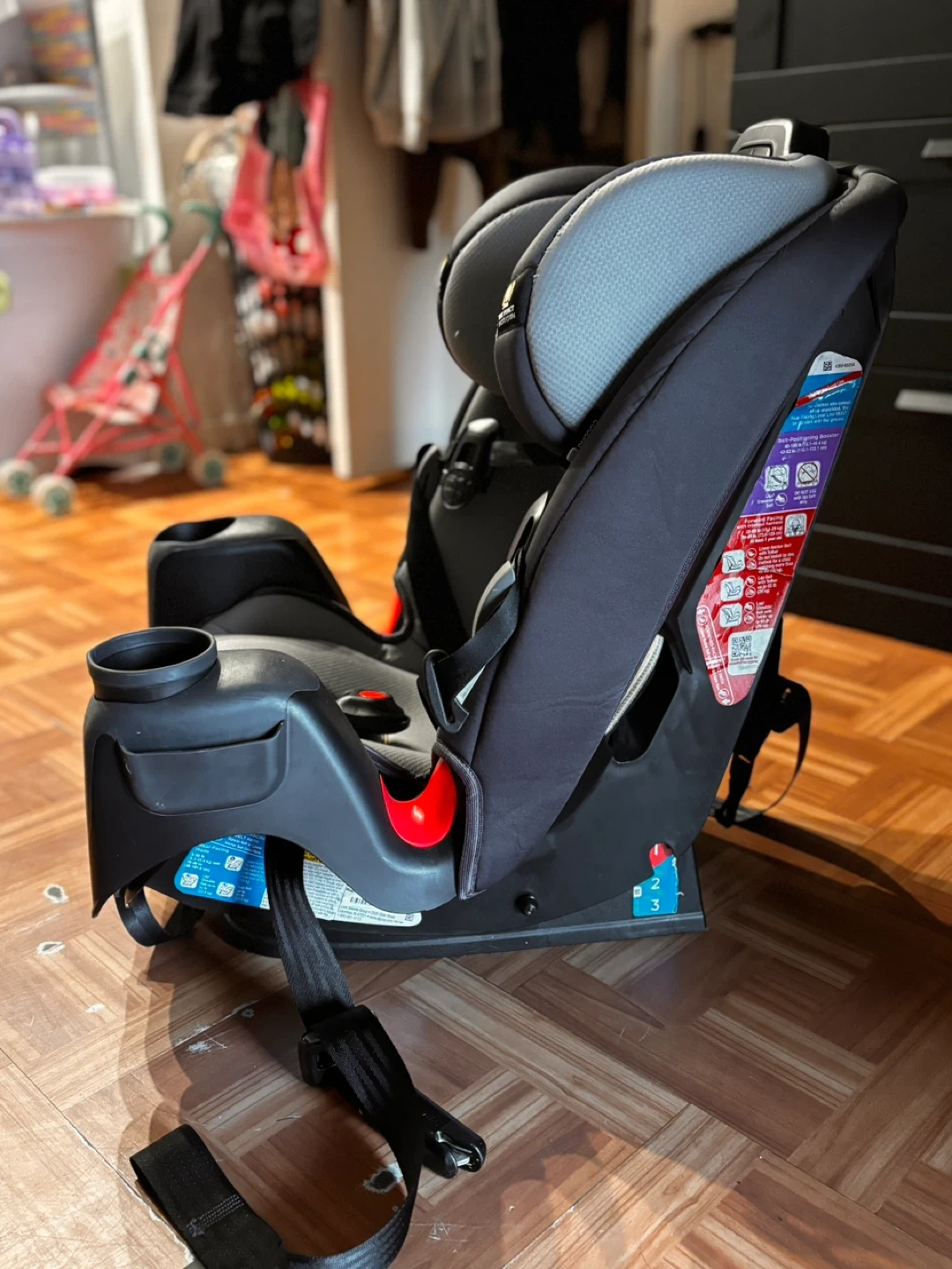This Safety 1st car seat offers comfort and cool. It features adjustable headrest and side impact protection. Dual cup holders are included. Great for growing kids!