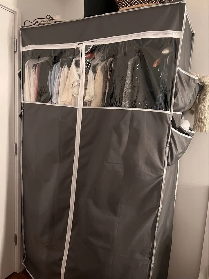 This is a 2-tier heavy-duty clothing rack, standing 81 inches tall. It includes a cover and side pockets. It's designed to carry up to 440lbs. Feel free to message if you have any questions!