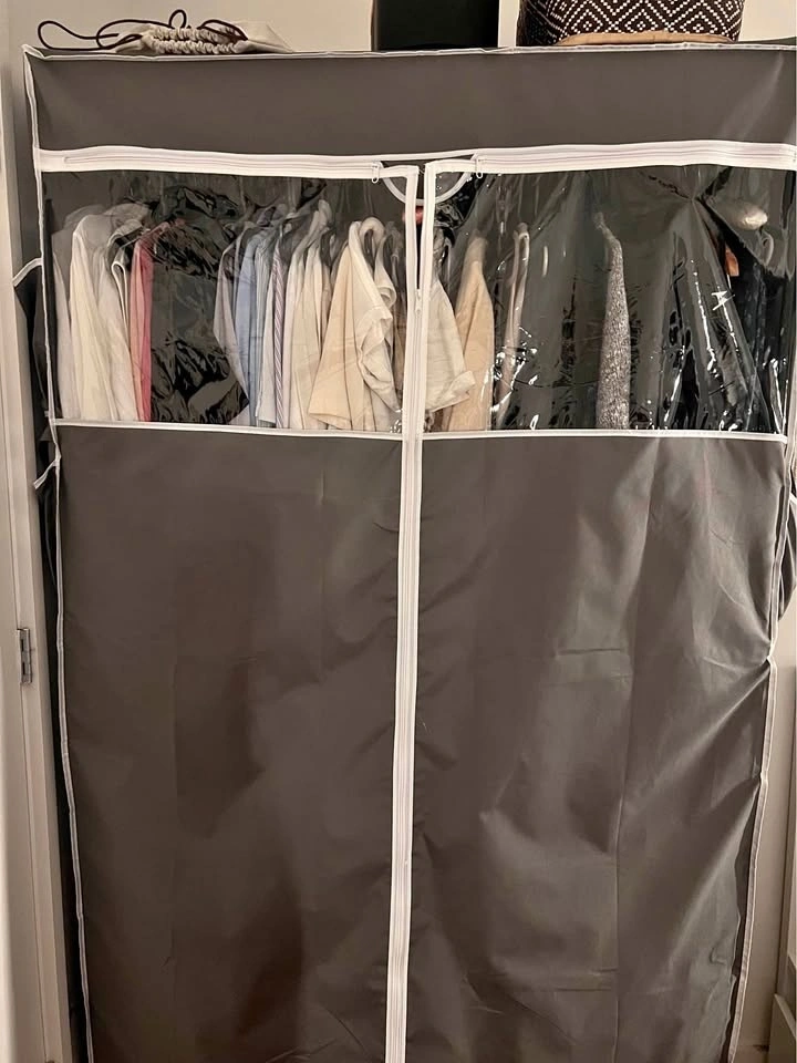 This is a 2-tier heavy-duty clothing rack, standing 81 inches tall. It includes a cover and side pockets. It's designed to carry up to 440lbs. Feel free to message if you have any questions!