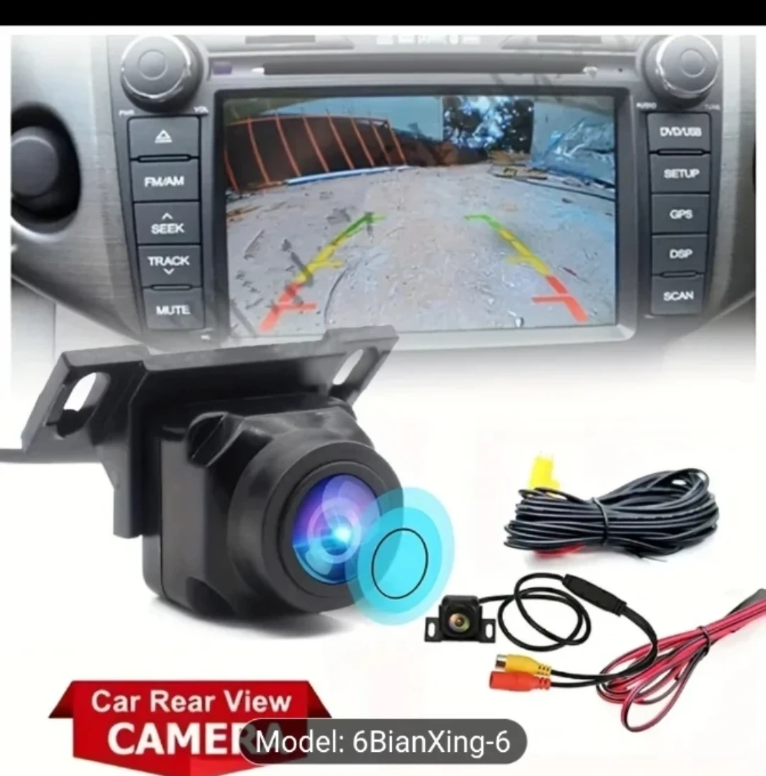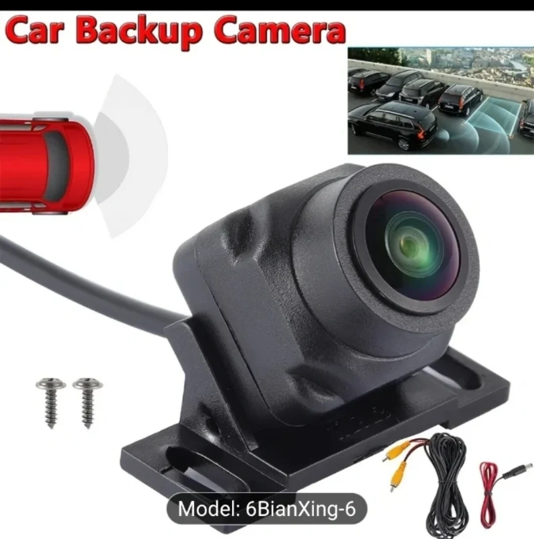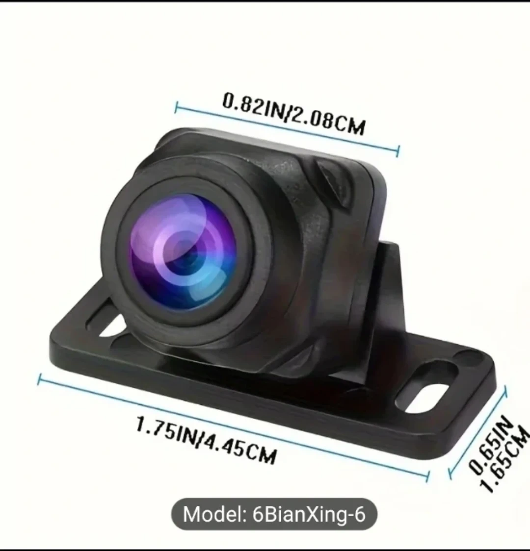 This is a car rear view backup camera. It's a compact unit with dimensions of 1.75IN/4.45CM by 0.82IN/2.08CM. Includes necessary wiring and mounting hardware.