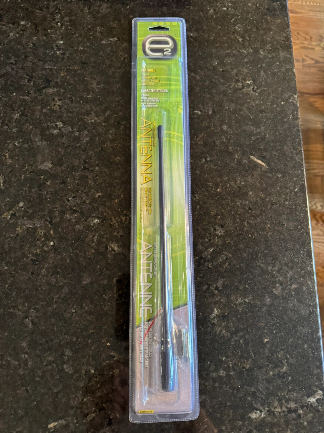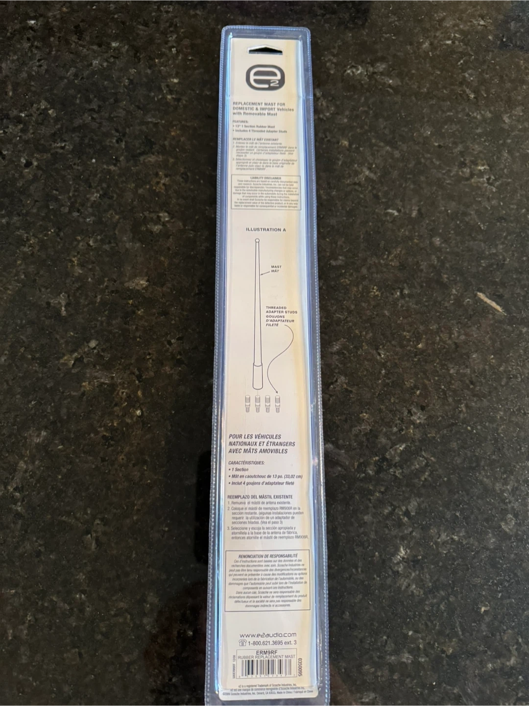Selling a new E2 antenna replacement mast, still in its original packaging! Perfect for replacing your vehicle's antenna. Includes mounting hardware.