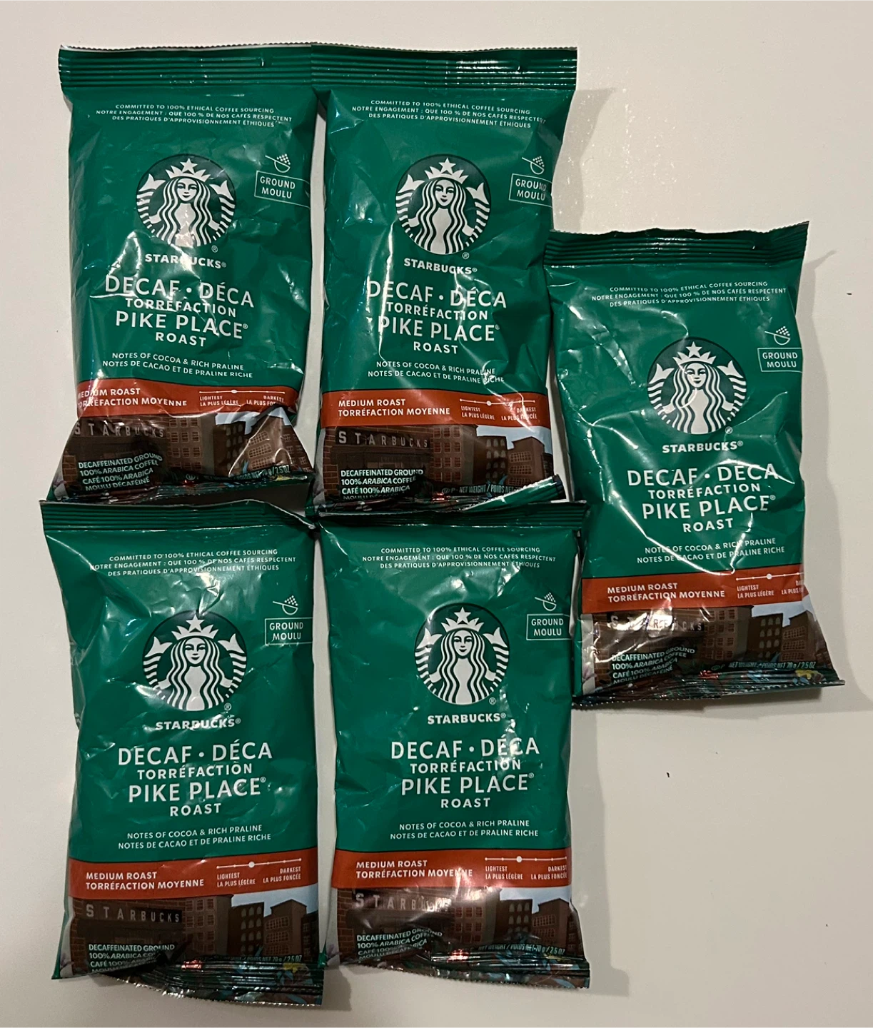 5 packs Starbucks Decaf Pike Place Roast - Ground