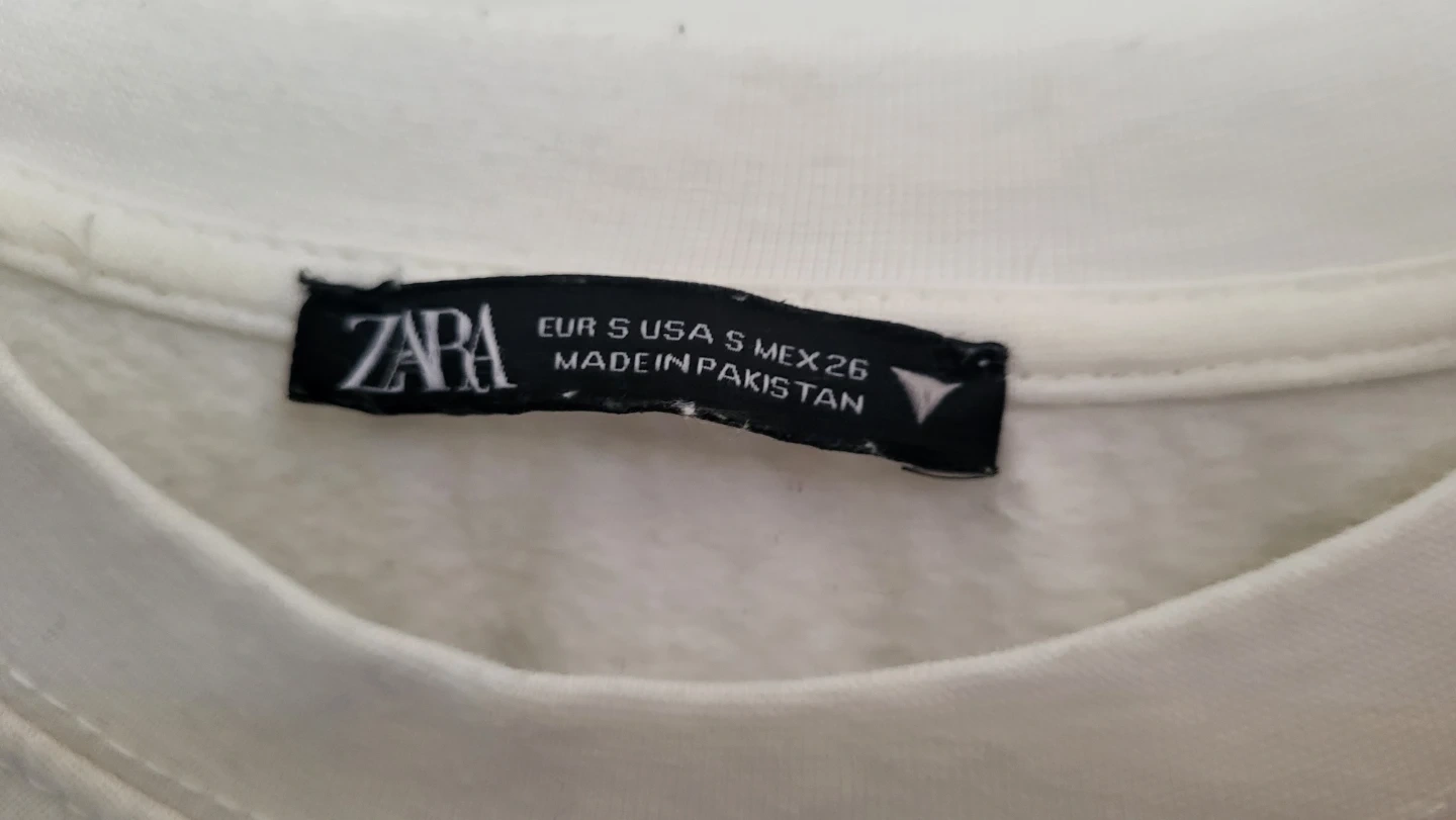 This is a ZARA white crewneck sweatshirt. It's a size S. It's a comfy staple for any wardrobe!