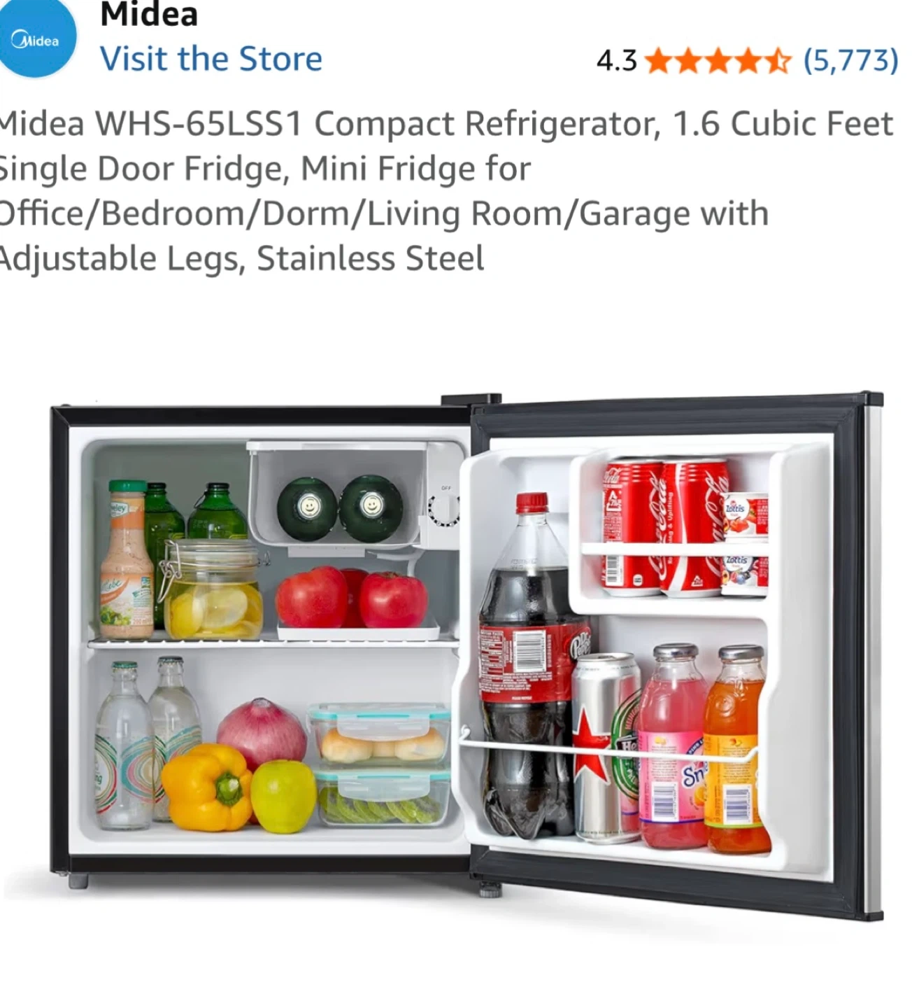 Selling a Midea compact refrigerator, perfect for a small space! It's 1.6 cubic feet, and the colour is stainless steel. This mini fridge is great for an office, bedroom, dorm, living room, or garage. It also has adjustable legs!