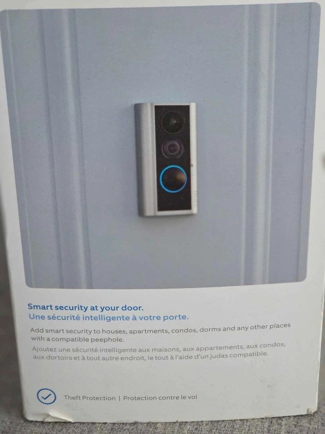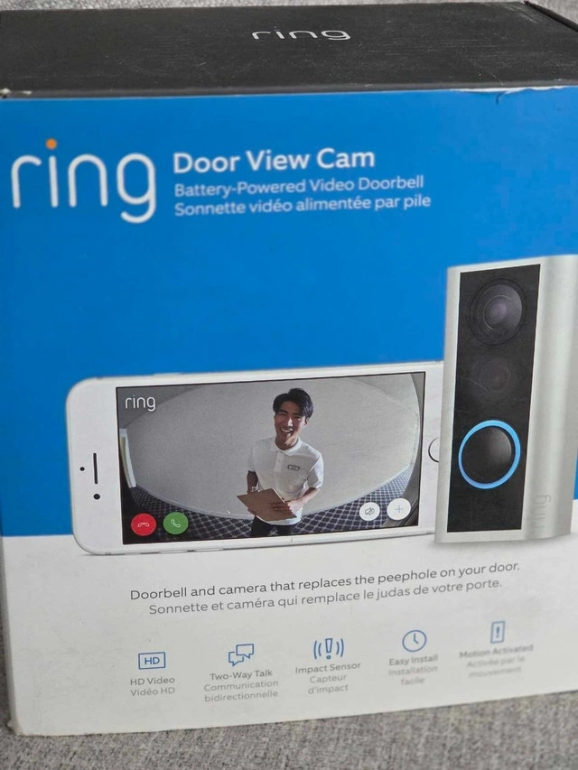 I'm selling a Ring Door View Cam, a battery-powered video doorbell that replaces the peephole on your door. This item is in used condition but still works great, offering HD video, two-way talk, and an impact sensor for added security. It’s a smart way to keep an eye on your entryway! Features include: HD Video, Two-Way Talk Communication, Impact Sensor, Easy Installation, and Motion Activated. Asking $115. If the ad's up, the Ring Door View Cam is ready to go!