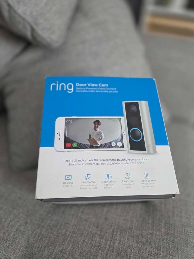 I'm selling a Ring Door View Cam, a battery-powered video doorbell that replaces the peephole on your door. This item is in used condition but still works great, offering HD video, two-way talk, and an impact sensor for added security. It’s a smart way to keep an eye on your entryway! Features include: HD Video, Two-Way Talk Communication, Impact Sensor, Easy Installation, and Motion Activated. Asking $115. If the ad's up, the Ring Door View Cam is ready to go!