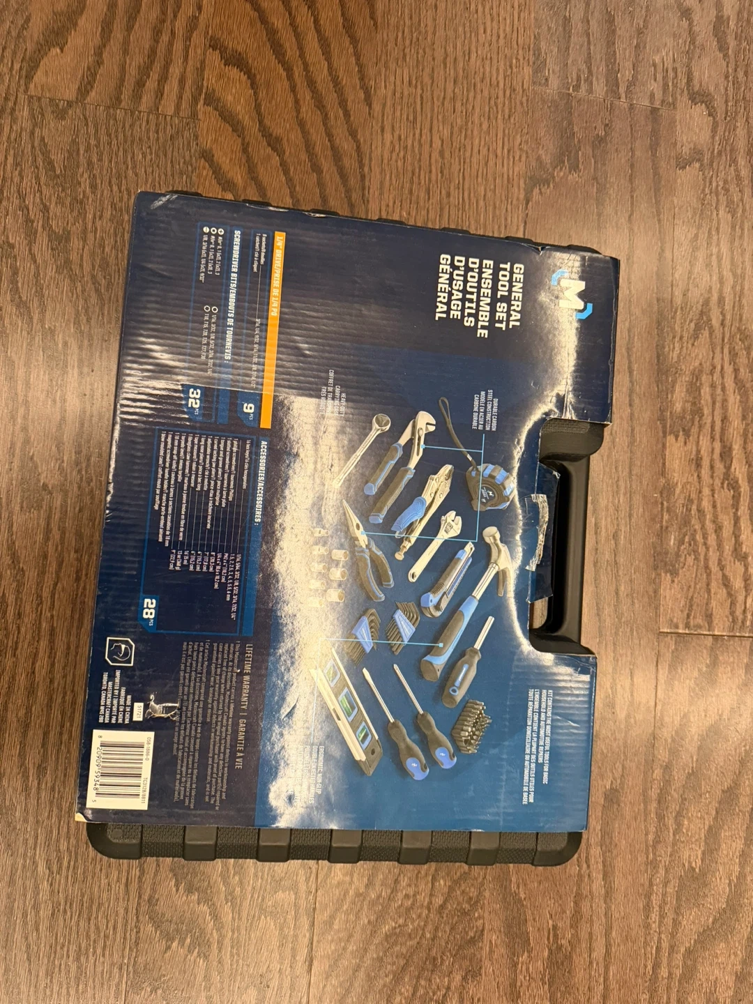 *BRAND NEW* Mastercraft 69-piece general tool set. Includes various wrenches, pliers, screwdrivers, sockets, and a hammer. Comes in a durable carrying case. 1/4" drive size.