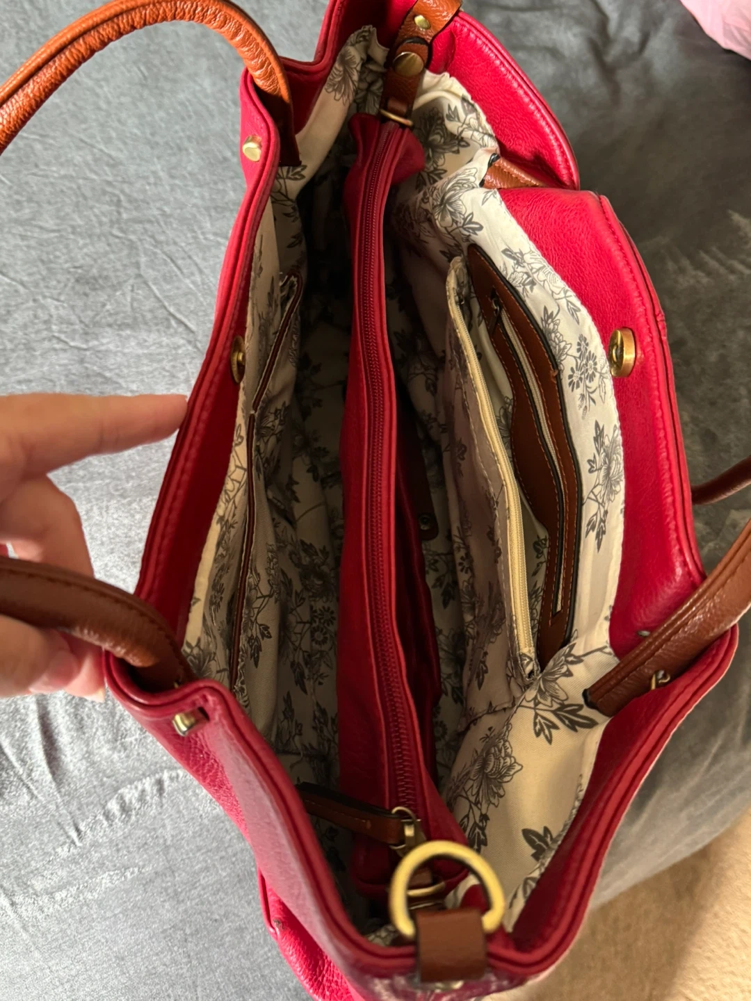 Lovely printed lining (same interior lining in all the colours) .. they are 17” long x 12” tall x 4 1/2”deep .. awesome for you for the office & everyday running around .. and they make a fantastic gift idea too