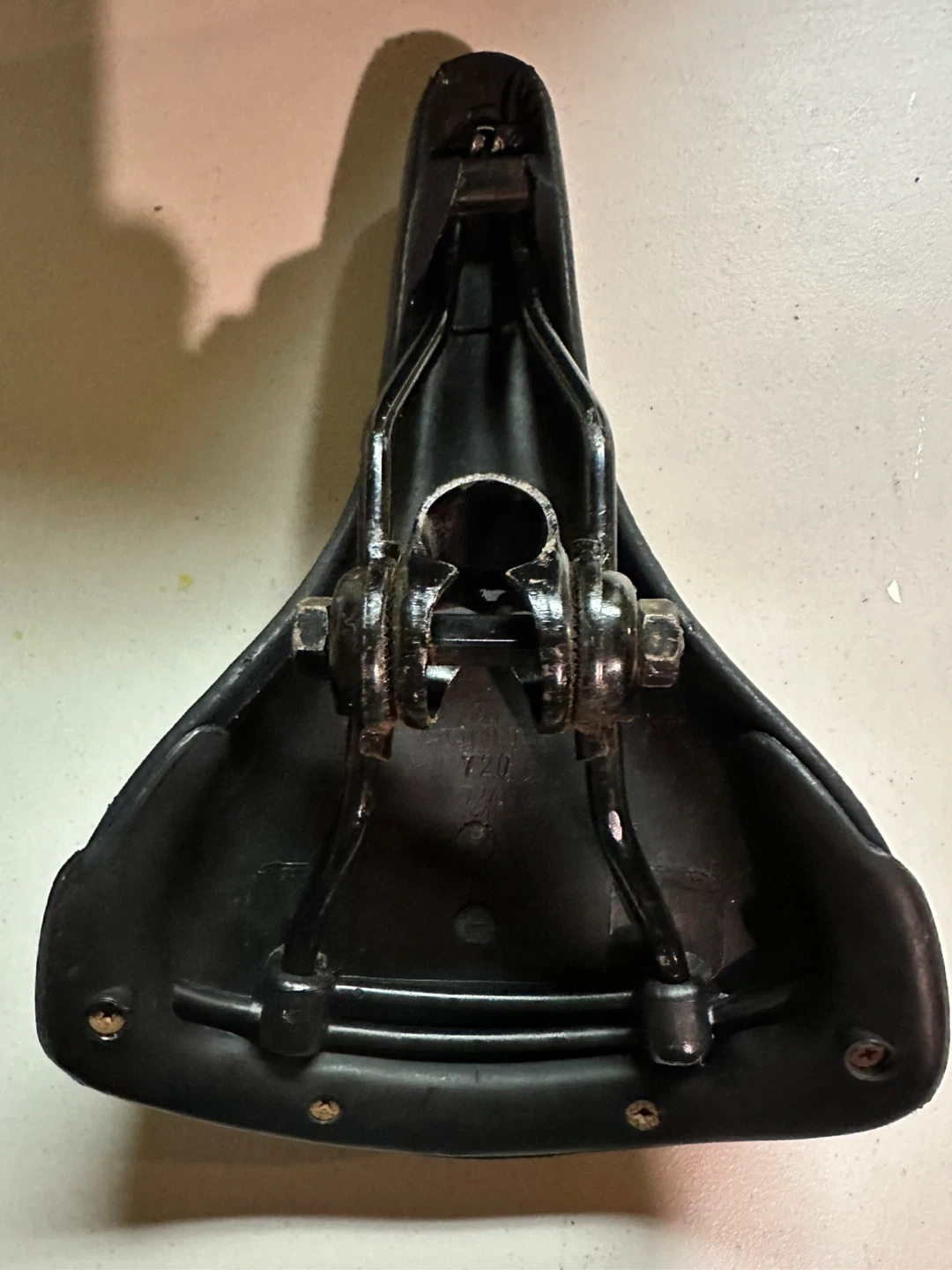Black Infinity brand bicycle saddle. It's a comfortable saddle with a suspension seat post. The seat post has a diameter of 28.6 mm.
