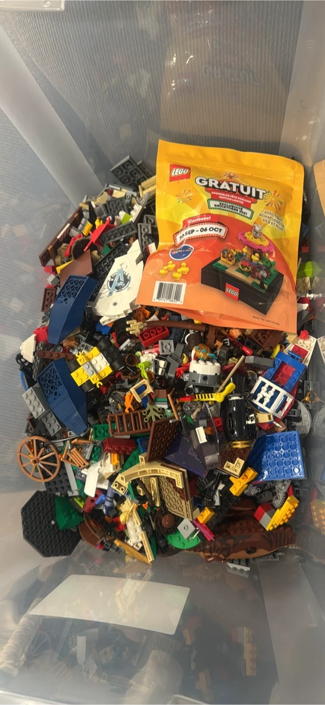 A generous collection of LEGO building bricks perfect for creative play and construction projects. Includes a variety of shapes, sizes, and colours for endless building possibilities. Great for kids and adults who love to build!