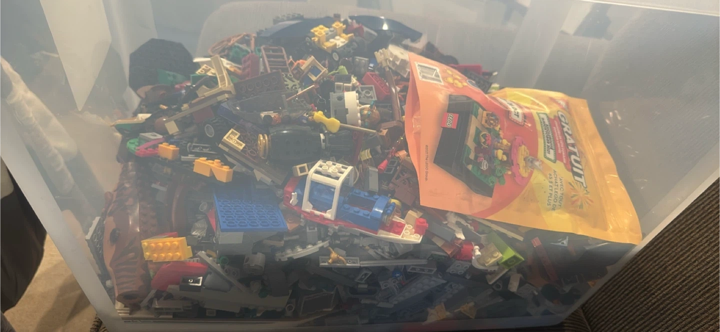 A generous collection of LEGO building bricks perfect for creative play and construction projects. Includes a variety of shapes, sizes, and colours for endless building possibilities. Great for kids and adults who love to build!