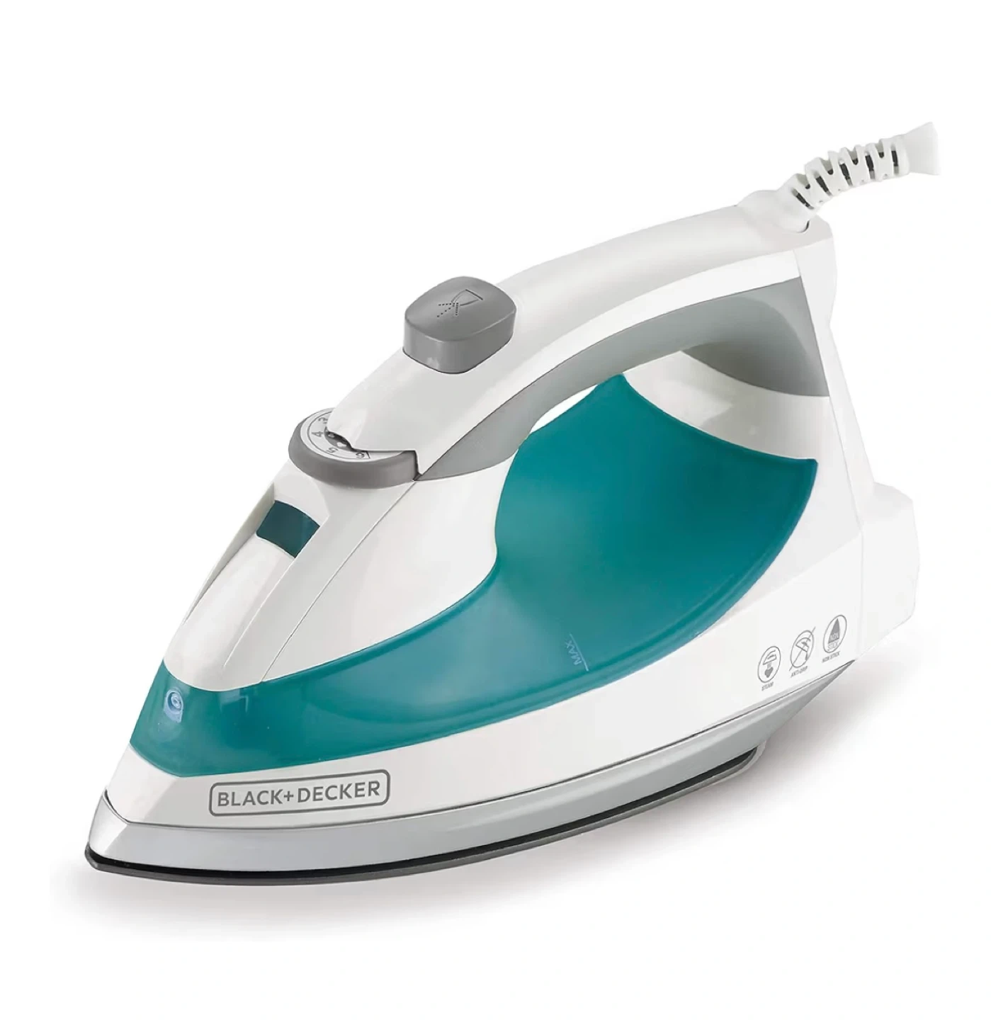 This BLACK+DECKER Easy Steam Compact Iron is perfect for getting your clothes wrinkle-free! It's in great condition and ready to use. The iron features a sleek design with a white and teal colour scheme. It's compact, making it easy to store and handle. Ideal for quick and efficient ironing!