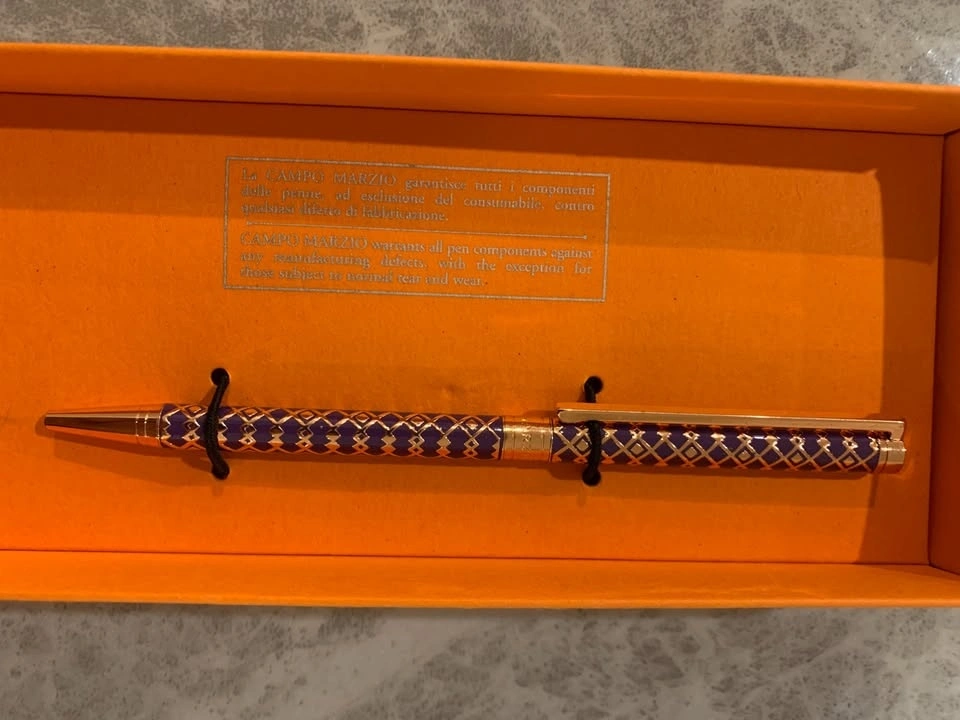 Brand new, elegant ballpoint pen from the world-famous Campo Marzio (ROMA 1933). Includes the pen, a certificate, and an orange message card. Campo Marzio has been designing fine pens for over 80 years. This makes a perfect gift for any occasion, symbolizing good wishes for prosperity and success. From a smoke-free and pet-free home. Pick up in Willoughby, Langley. CASH ONLY.