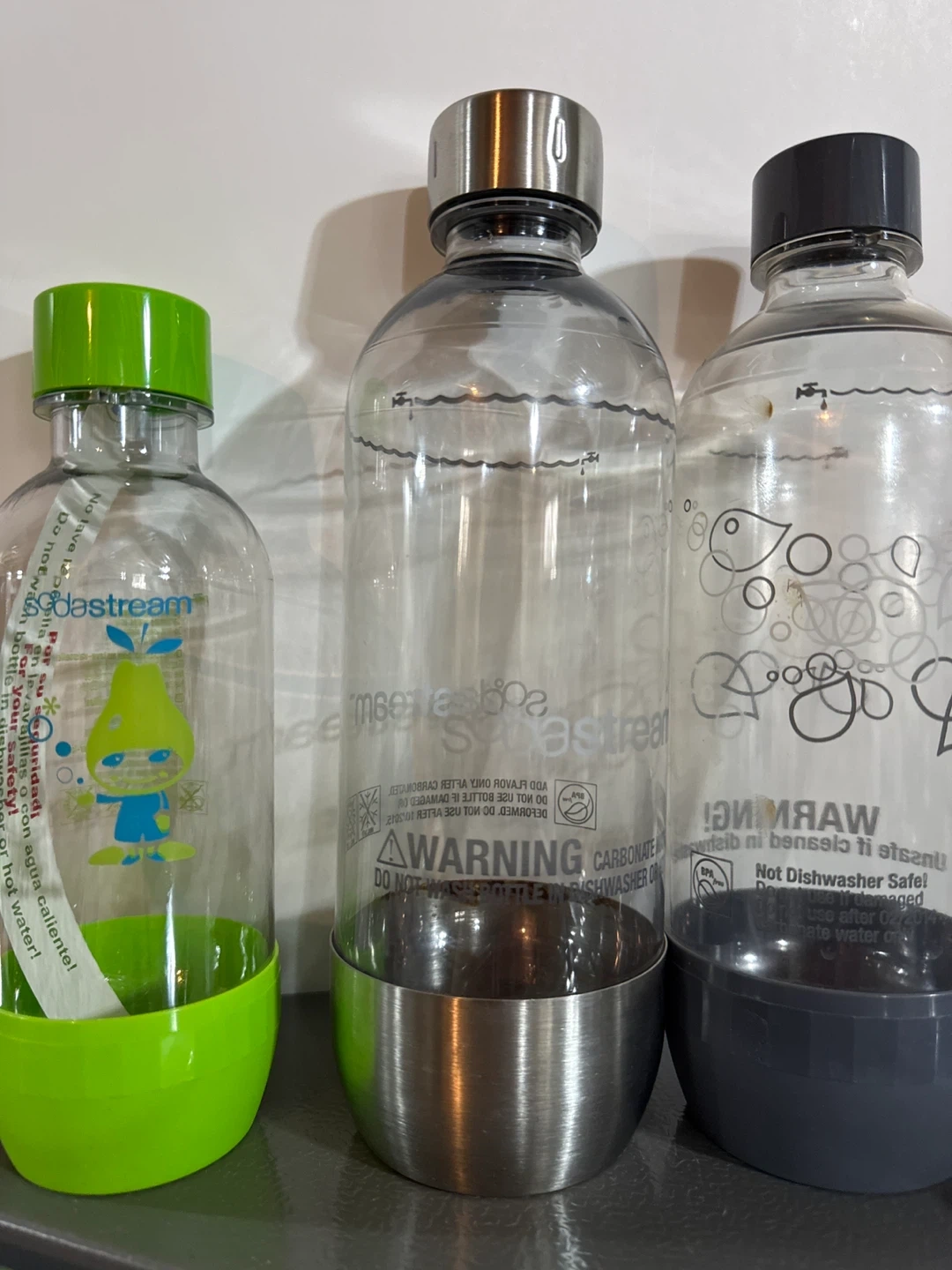 Make your own fizzy drinks at home with this SodaStream machine. It comes with three reusable bottles, including one lime green, one with a metallic base, and one with a dark grey base. Just add water and carbonate!