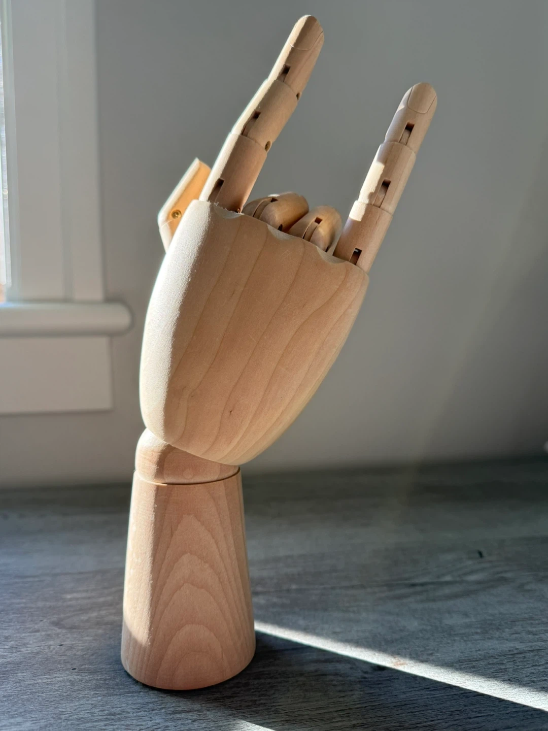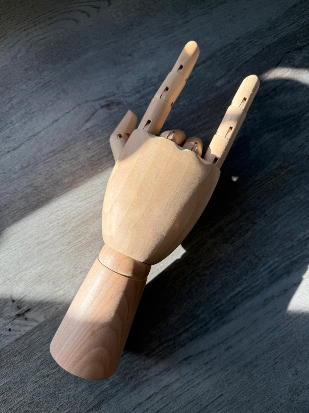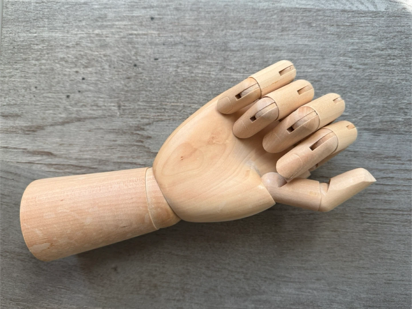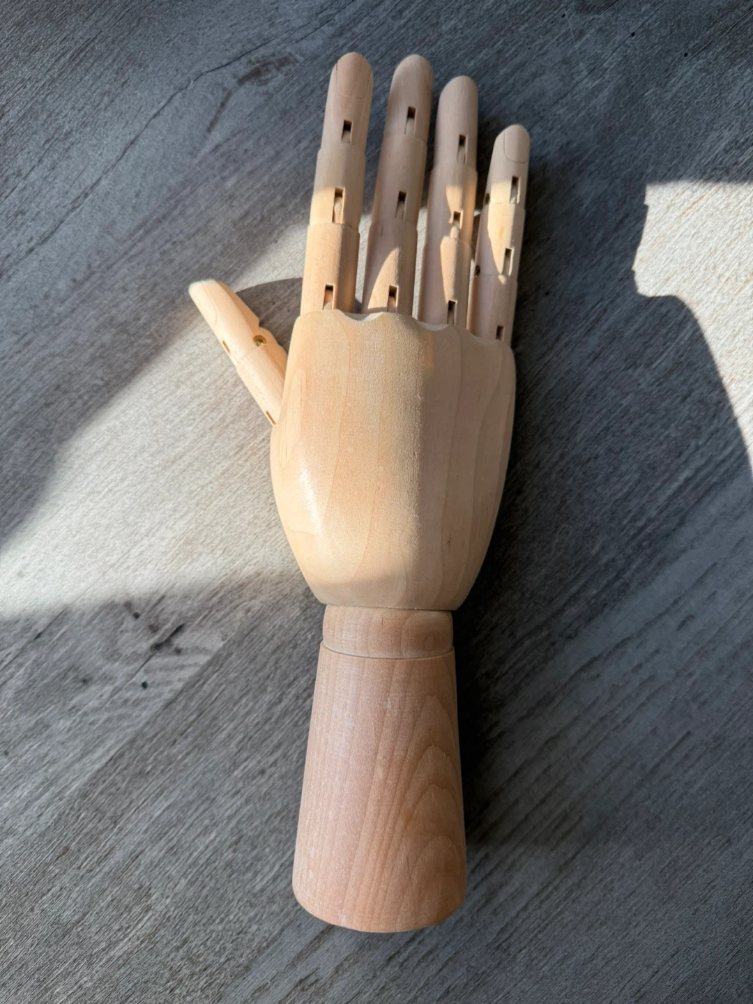 This is a wooden mannequin + jewelry hand. It's made of (potentially solid beech) and has articulated fingers. Perfect for artists or as a unique desk accessory!