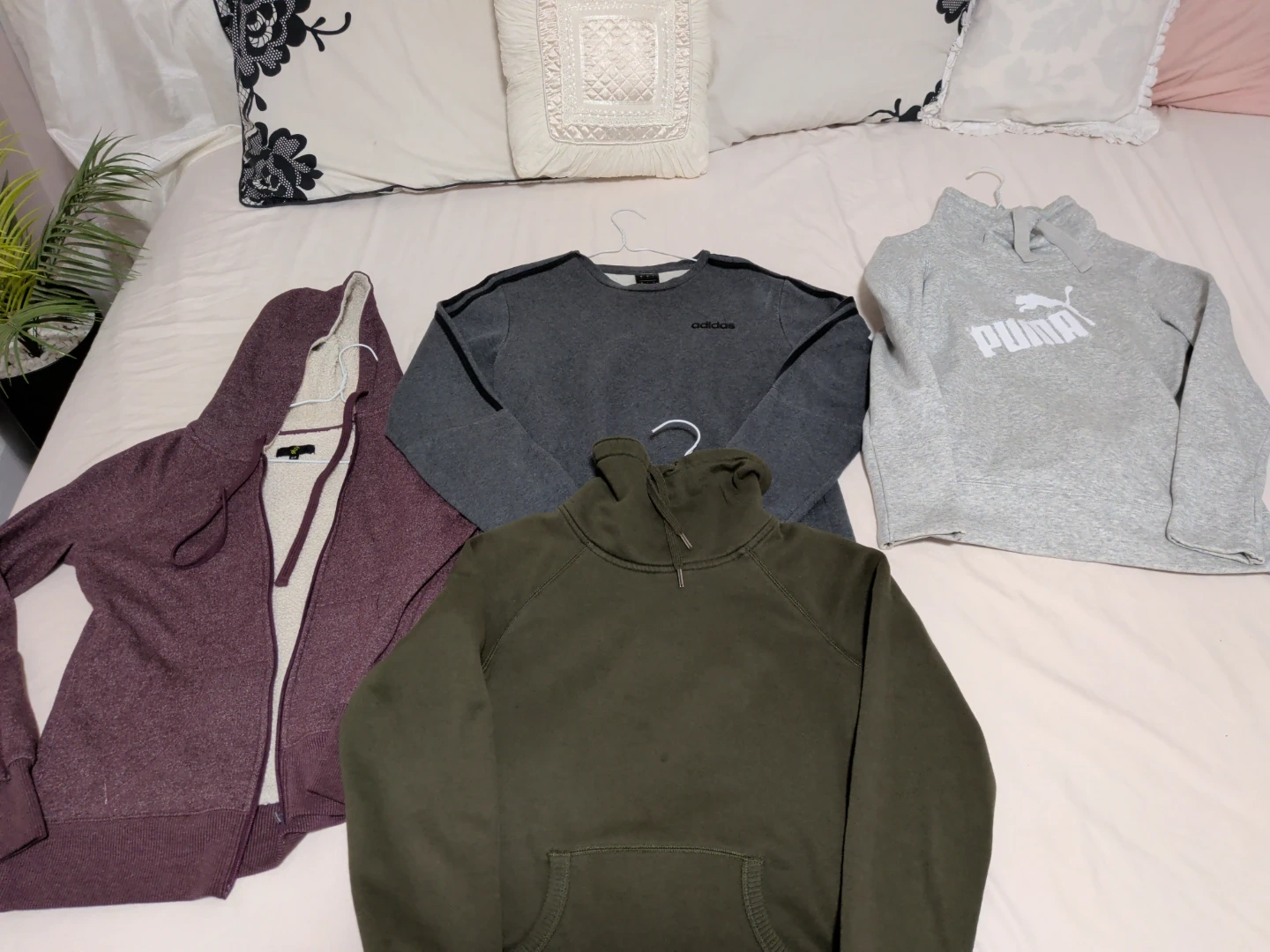 Selling a variety of hoodies and sweaters! You'll find brands like Adidas and Puma in the mix. They're all in great shape and ready for a new home