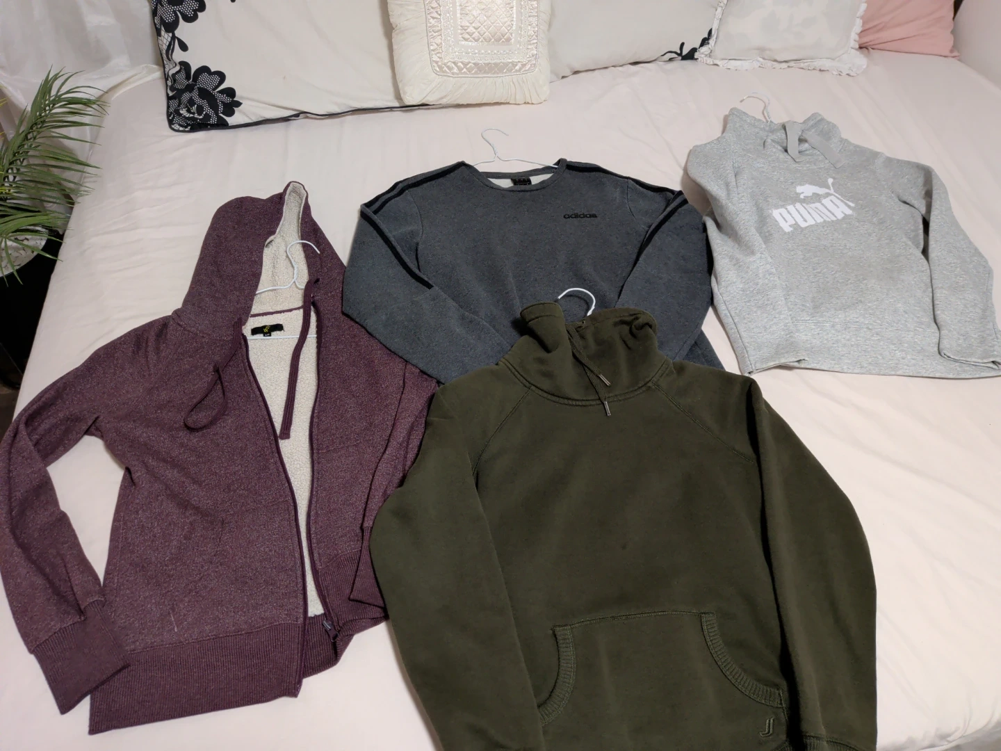 Selling a variety of hoodies and sweaters! You'll find brands like Adidas and Puma in the mix. They're all in great shape and ready for a new home