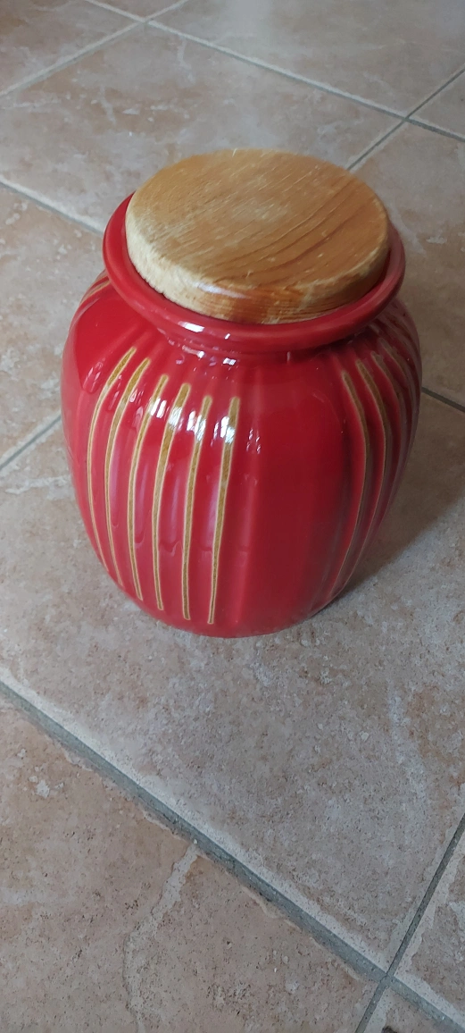 Red Ceramic Jar with Wooden Lid