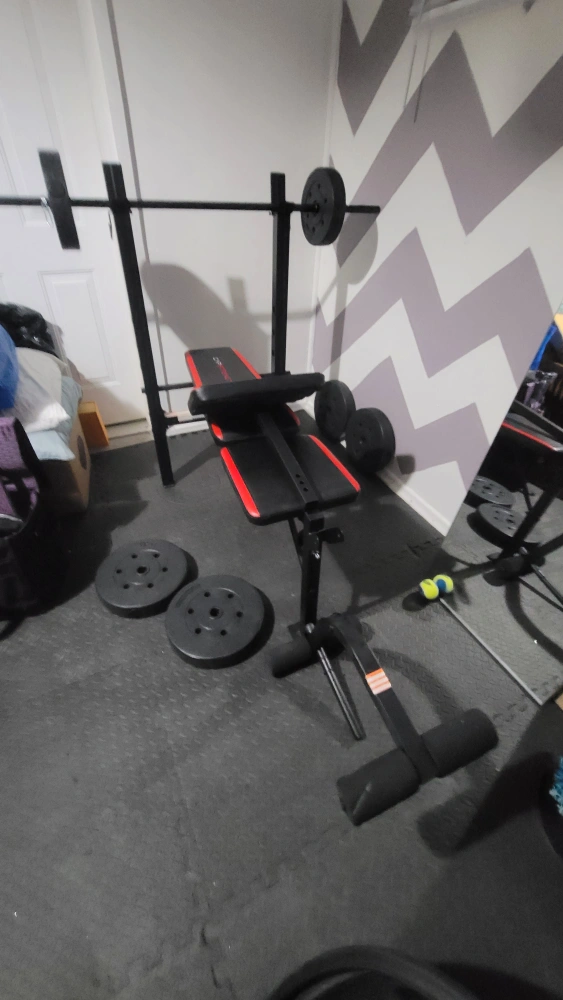 CAP Barbell Adjustable Utility Weight Bench for full body workout with 100lbs weight set.
