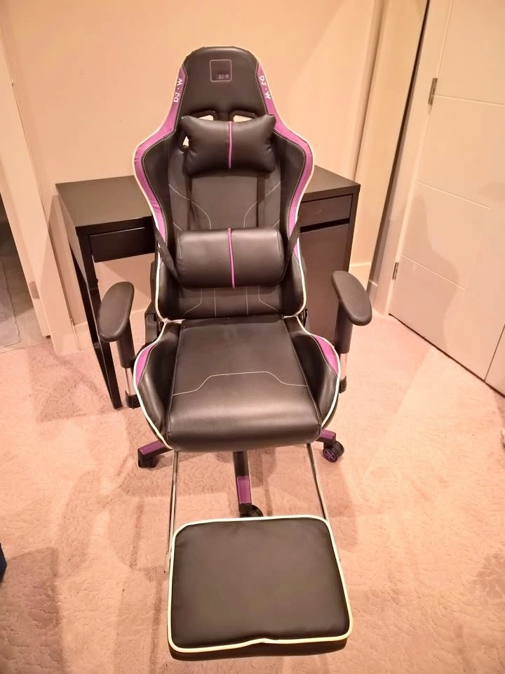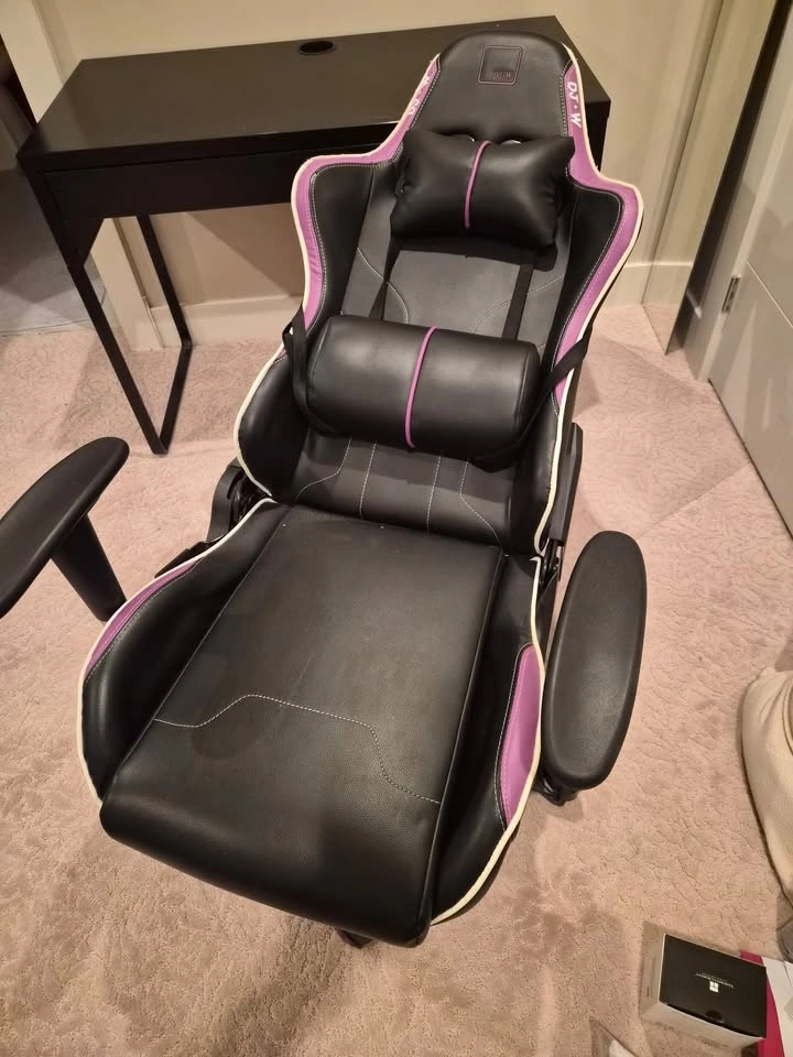 Features a footrest, lumbar support, and neck support. It also fully reclines. Let me know if you're interested!