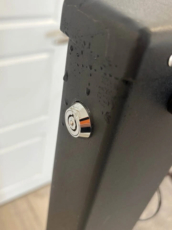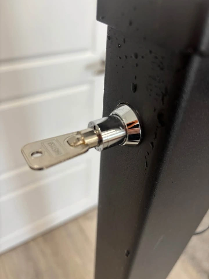 ONE LEFT - CDN made security post. Park your trailer or boat up against the side of your house and secure the post to the driveway. Insert the unique key to lower the post, then lock when upright. It allows you to move your trailer or boat in and out without worrying about someone trying to take it away. Canadian A500 - 21 GR B/C cold formed welded & seamless carbon steel, powder coated in Ontario. 51x102 mm (2"x4") post with a 3.2 mm thick wall for strong security. 1.1 metres high (41") to protect trailers/boats. Bolt into asphalt or pad.