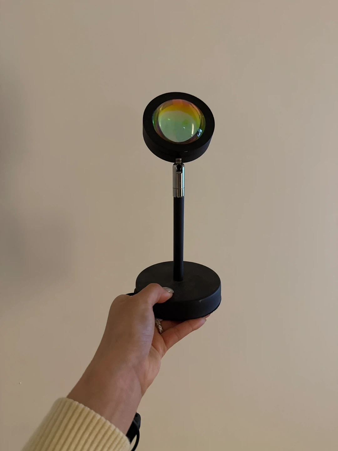 This sunset lamp projects a beautiful sunset glow onto your walls. It's perfect for creating a relaxing ambiance in any room. The adjustable head allows you to direct the light wherever you want it.