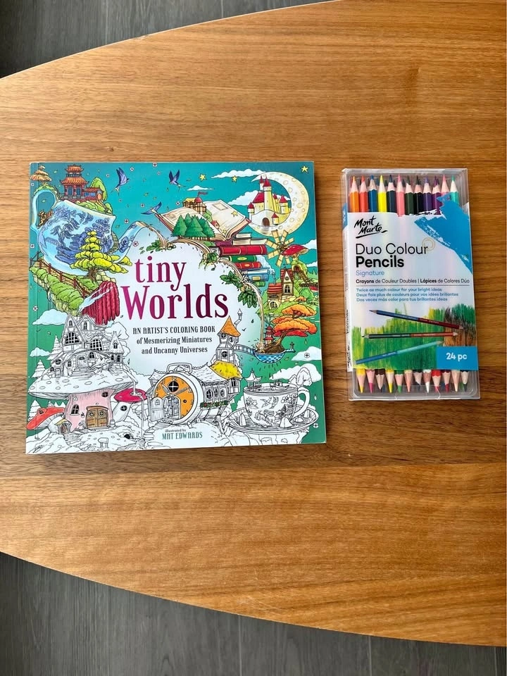 Tiny Worlds Coloring Book + 24 Duo Color Pencils