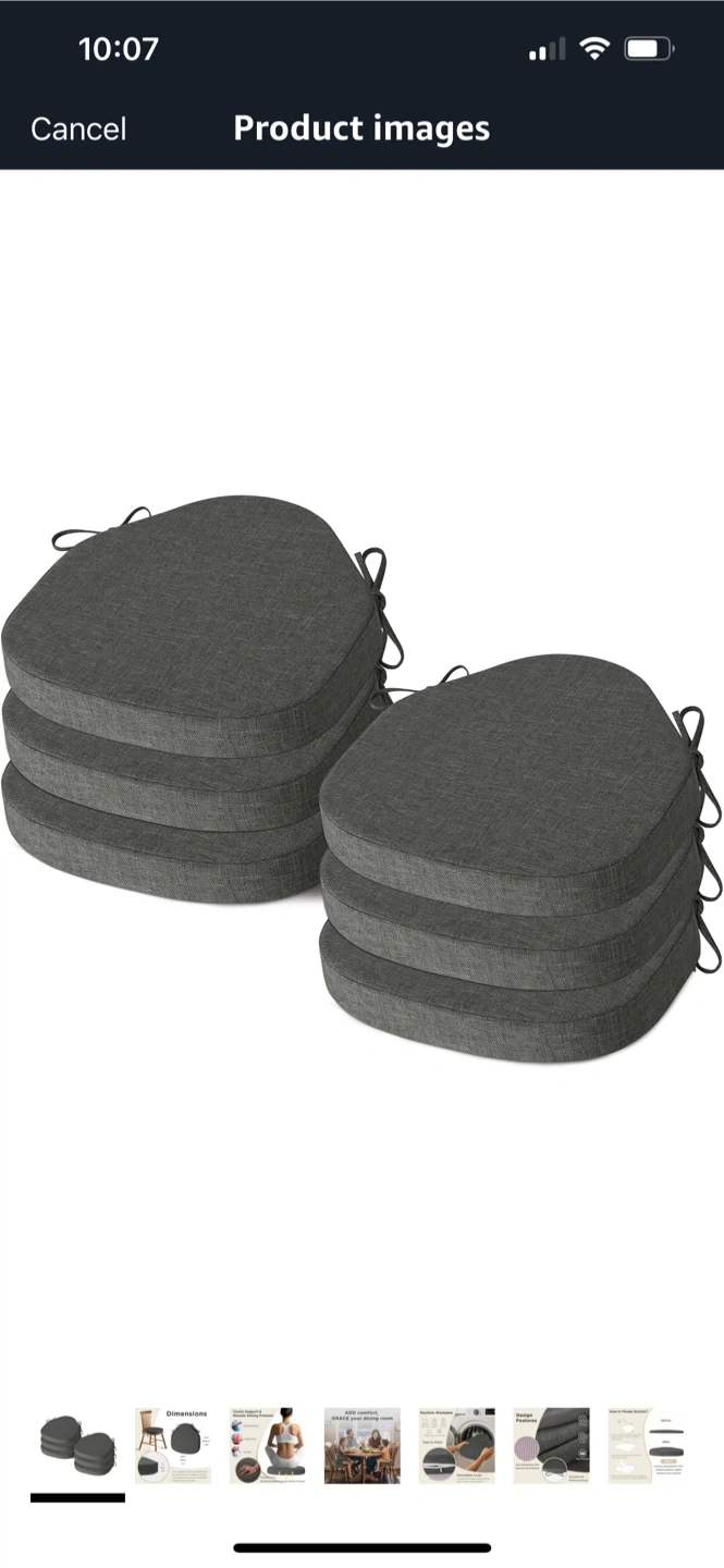 These AddGrace chair cushions are perfect for adding comfort and style to your dining chairs! They come in a dark grey colour and measure 16.5 x 15.5 inches. The cushions have a removable textured cover and a non-slip bottom, plus ties to keep them securely in place. They're designed for indoor use and are filled with foam for extra comfort