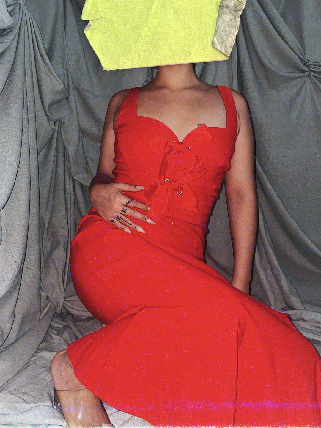 stretchy red denim mermaid midi dress w big ribbons