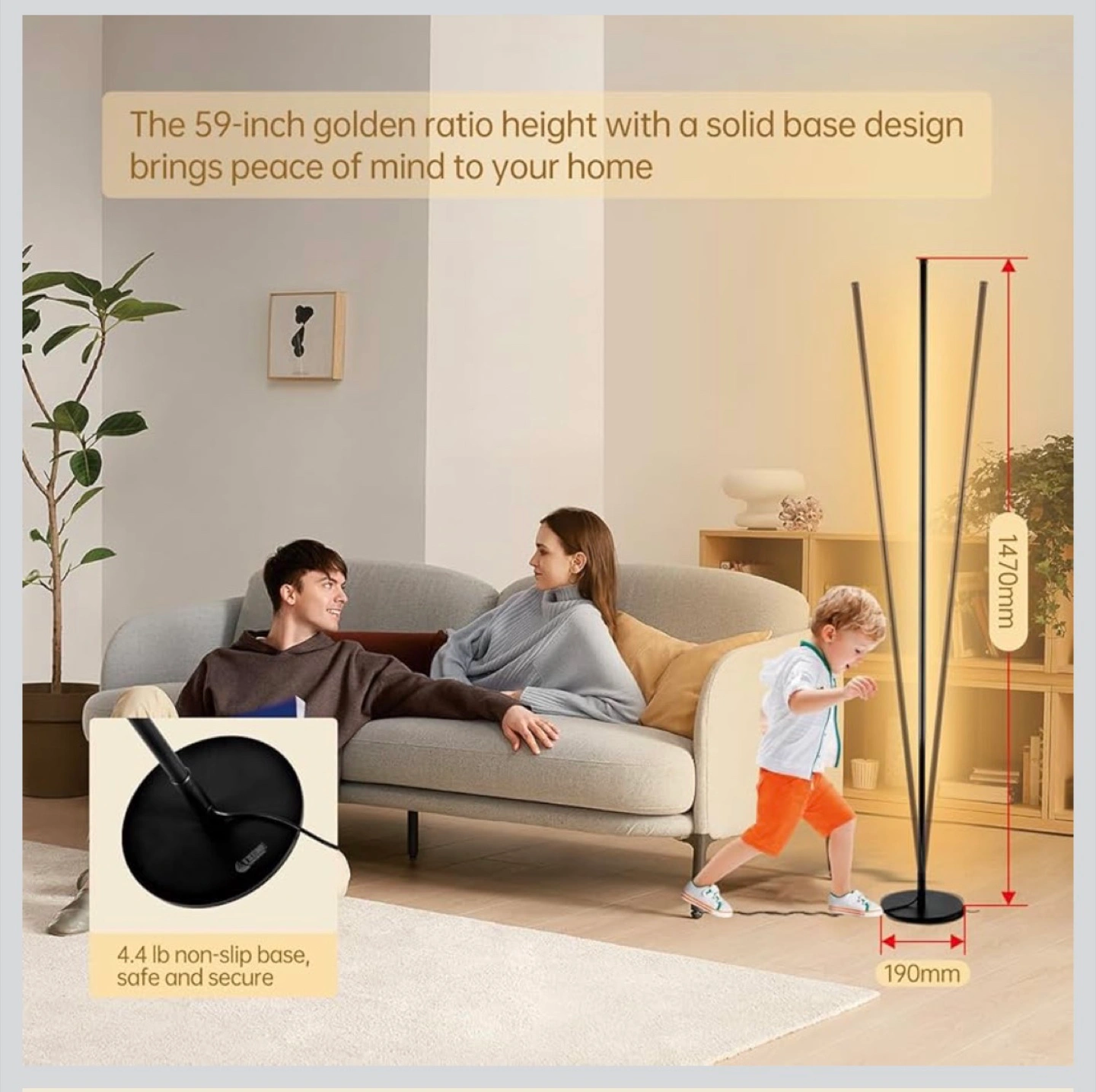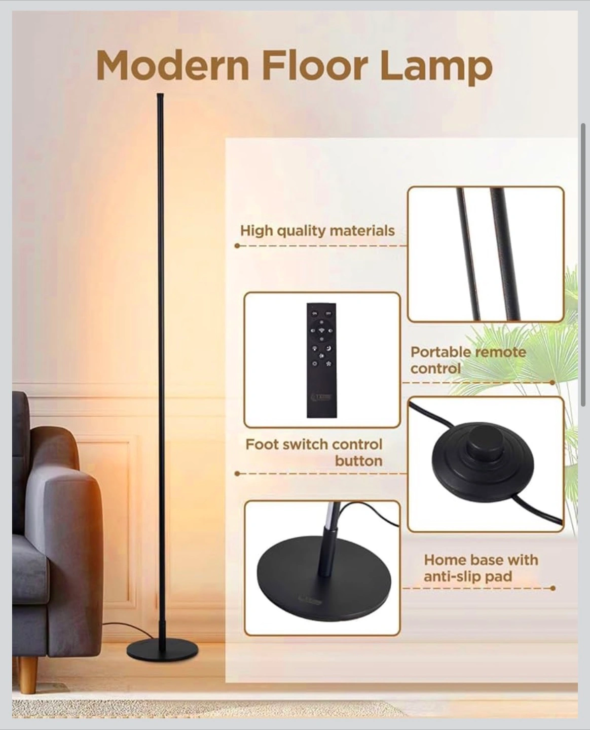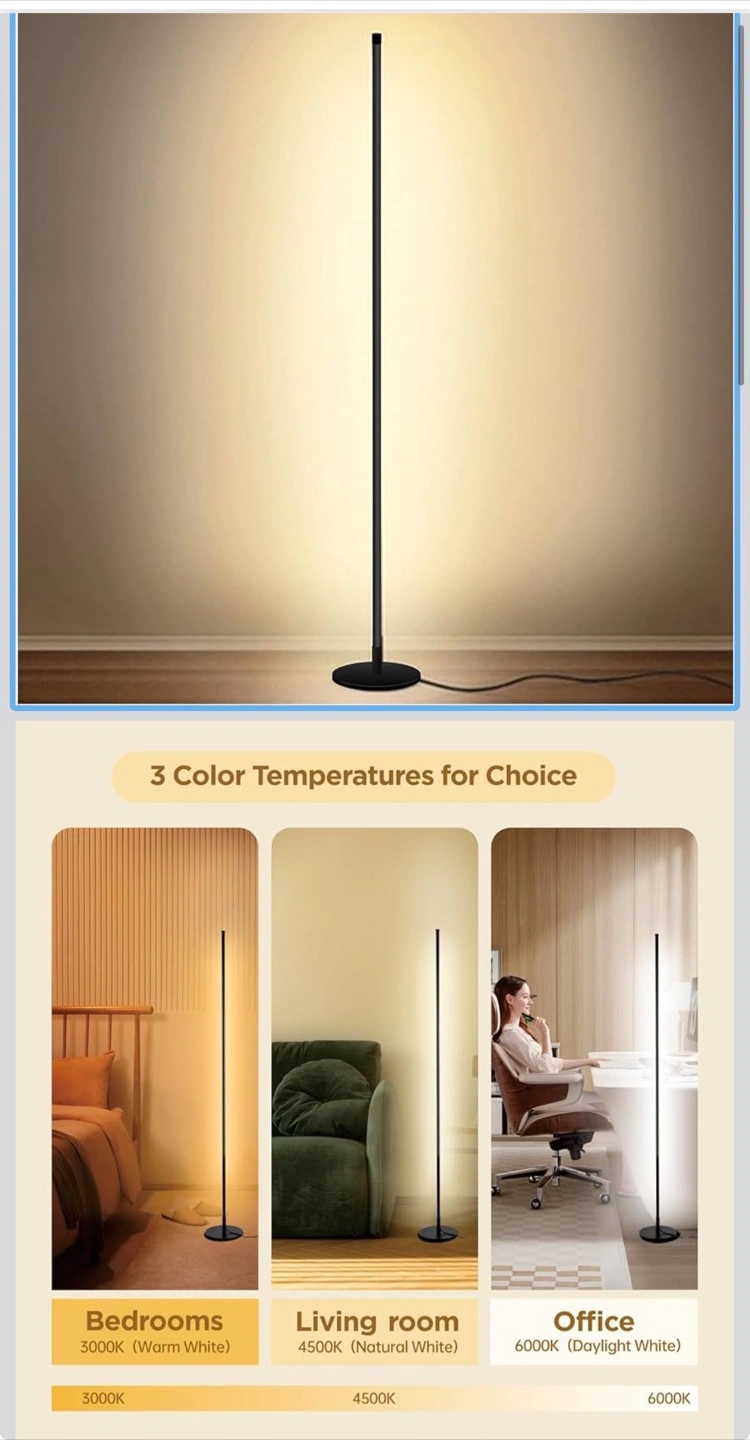 Modern Led Standing Corner Lamp Black Decor Contemporary Metal Floor Lamp for Living Room Bedrooms with Remote & Touch Control