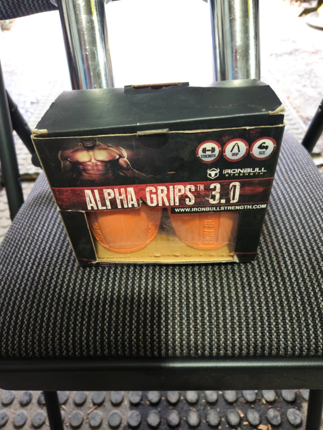 Orange Alpha Grips 3.0 by Iron Bull Strength. These are designed to enhance your grip during weightlifting. They're made from durable rubber for a secure hold.
