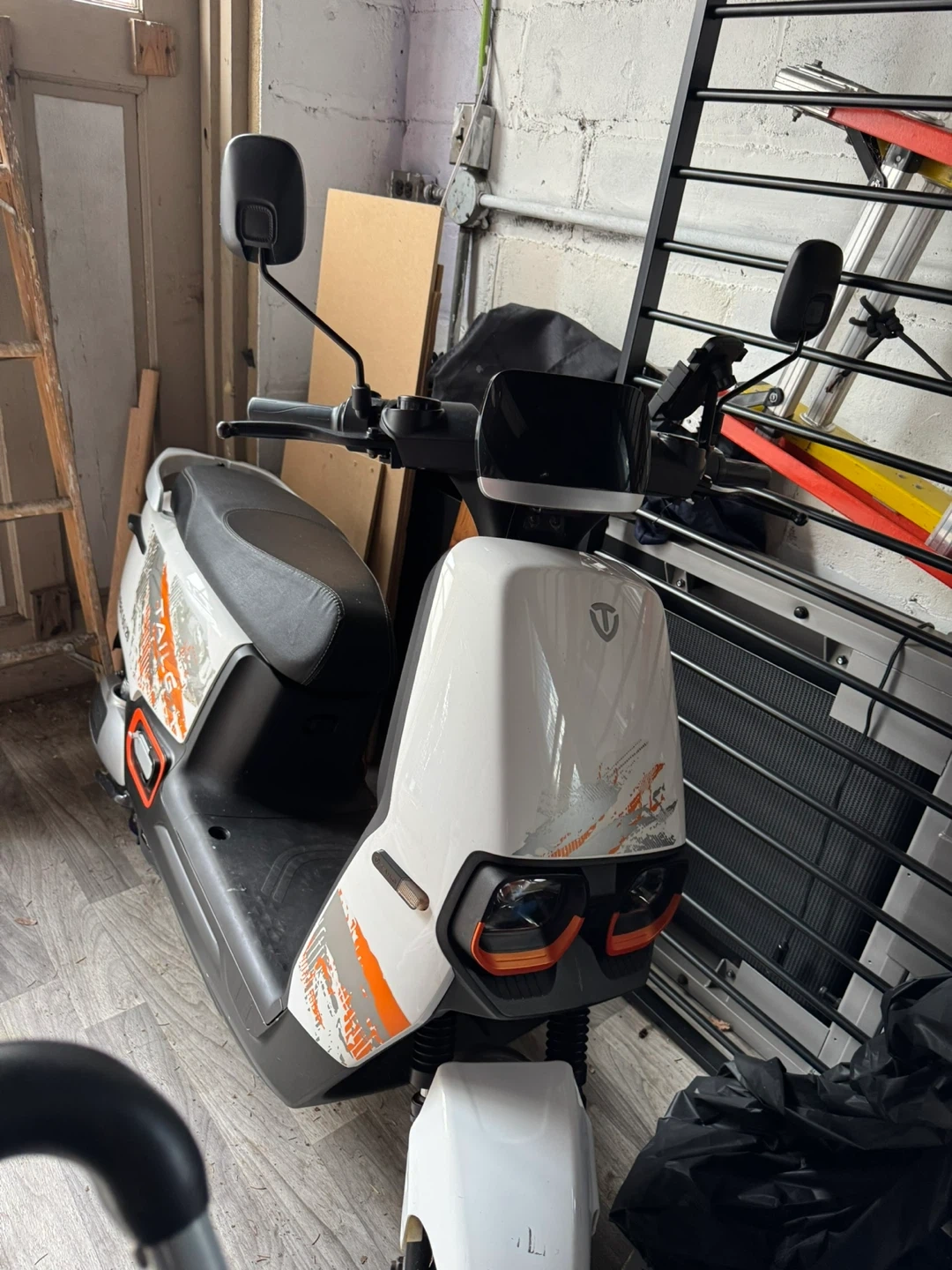 TAILG E-RABBY 60/20 electric scooter in white with orange accents. This scooter offers a convenient way to get around town. It's ideal for short commutes or running errands.