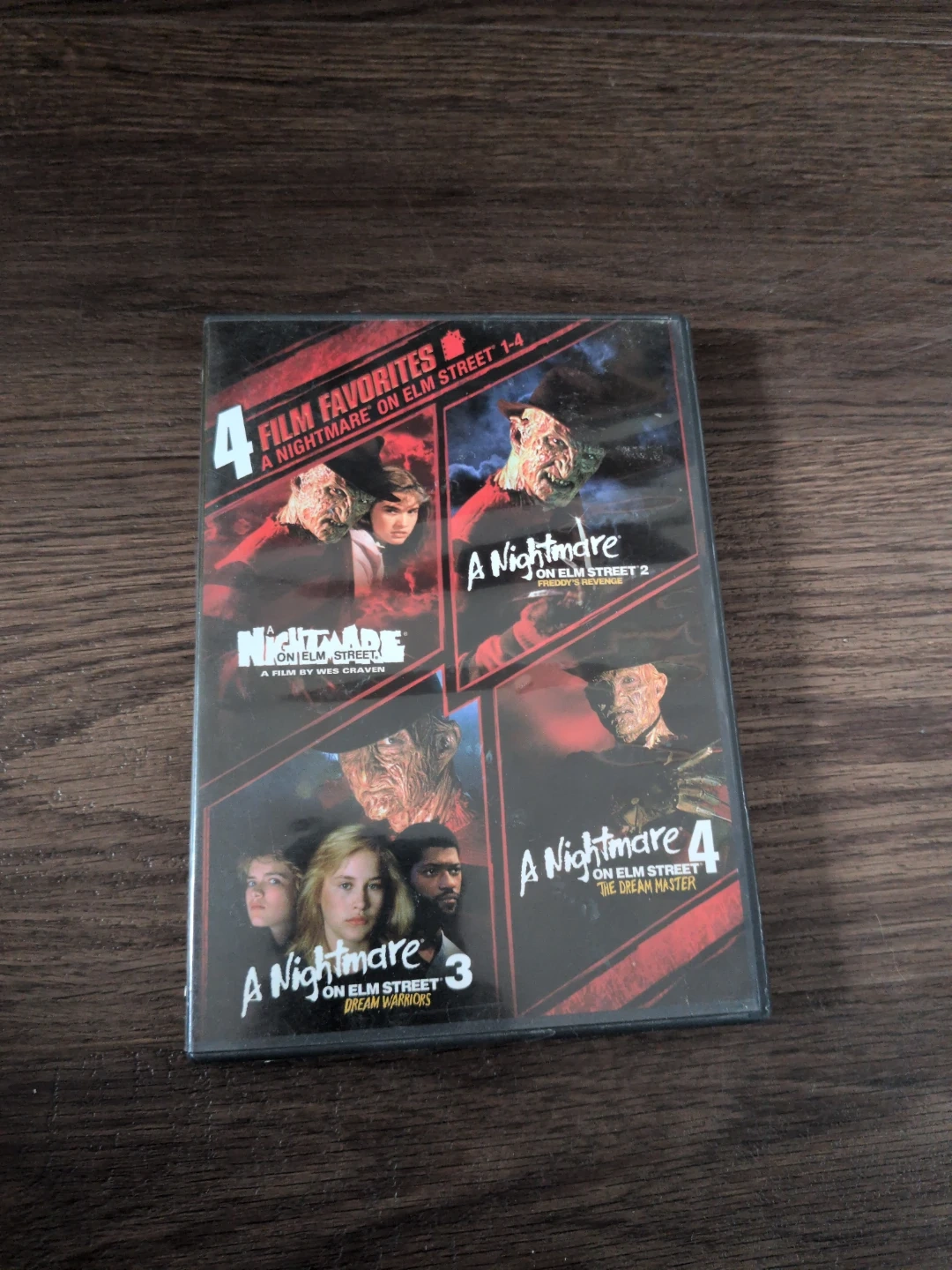 This DVD set includes the first four films in the A Nightmare on Elm Street series. It features "A Nightmare on Elm Street", "Freddy's Revenge", "Dream Warriors", and "The Dream Master". These are classic horror films.