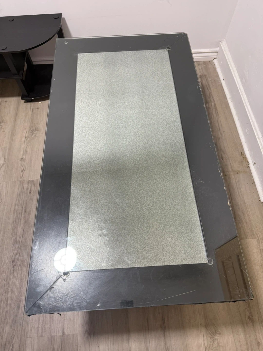 This stylish coffee table features a glass top and a sleek metal frame. Its modern design complements various decor styles. The lower shelf provides extra storage space for books or decorative items.