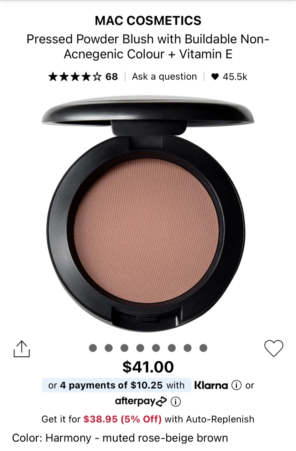 Buy & SellMAC Pressed Powder BlushMAC Pressed Powder Blush$20This is a MAC Cosmetics pressed powder blush. It's a buildable formula with vitamin E. The net weight is 21 oz/6 g.ConditionNewBrandMAC CosmeticsWHERE TO MEETNorth BurnabyView MapSELLERverifiedDeeHoldom-Burnaby North45439 reviews0 chats·0 favorites·4 viewsSEND CHAT TO SELLERHi Dee! I’m interested in your listing.Hi Dee! I’m interested in your listing.Get the Karrot app to chatSign In to chat