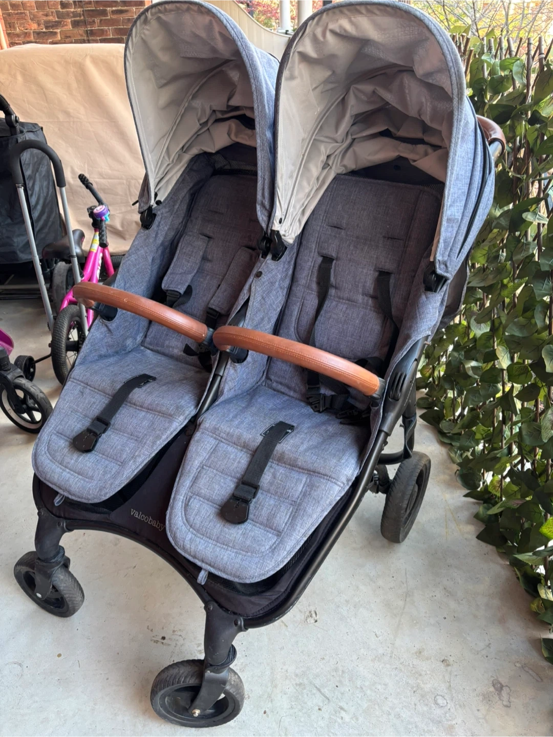 Selling a Valco Baby twin stroller in grey. It's in good condition and ready for your little ones! Perfect for parents with twins or two young children close in age