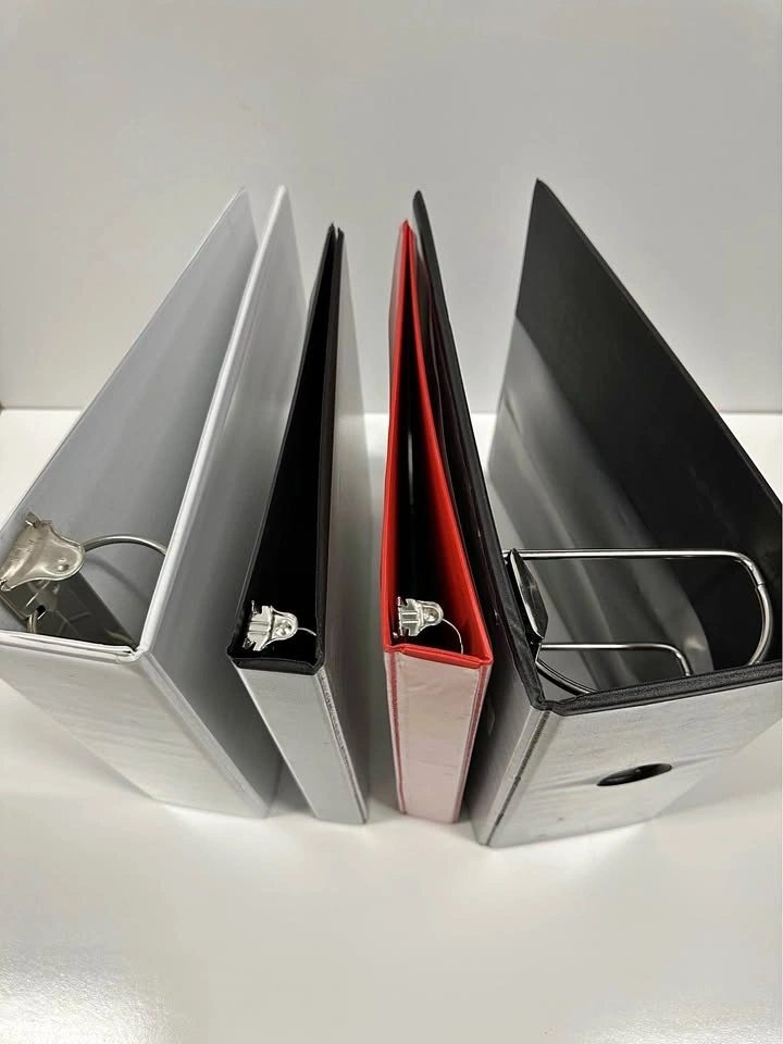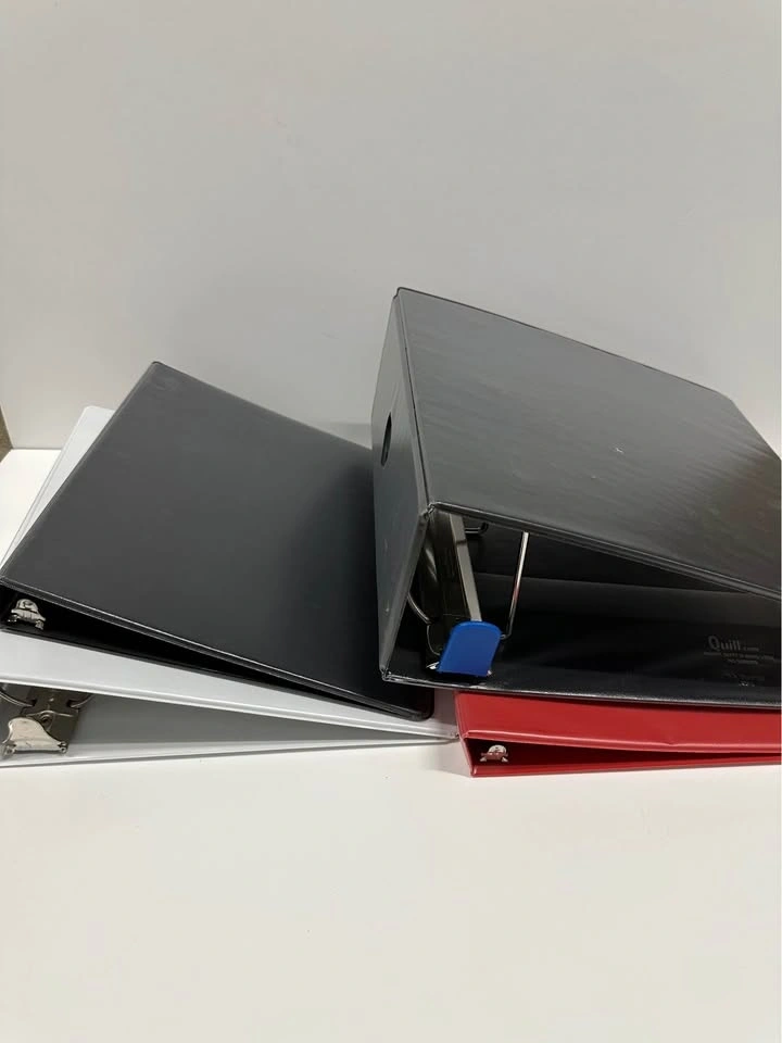 Set of 4 binders, new and just stored. These are 3-ring binders in different colors and are clean inside. Great for school, office, or storage. Pickup in Buffalo Grove.