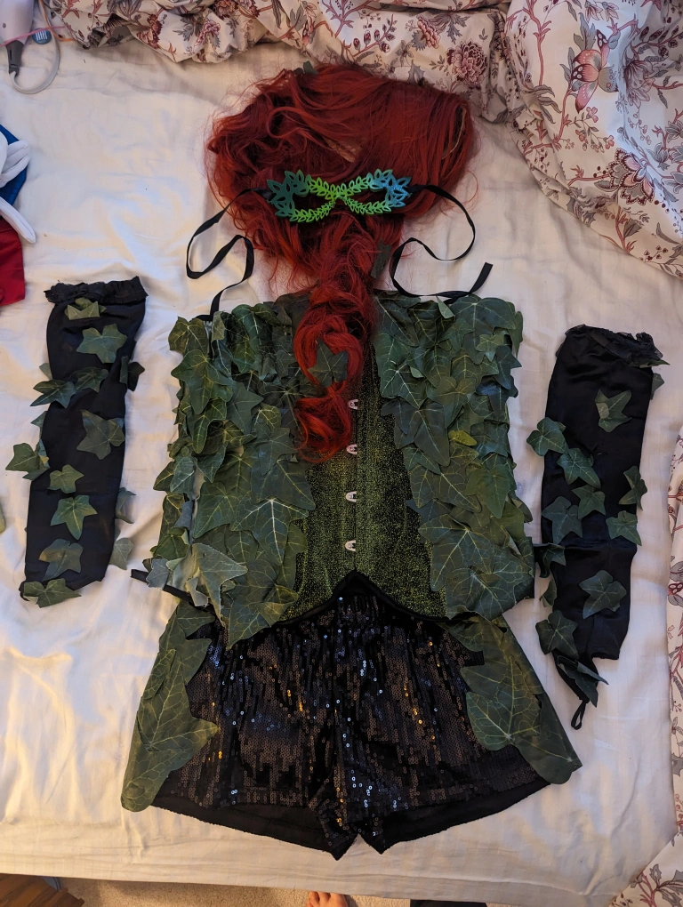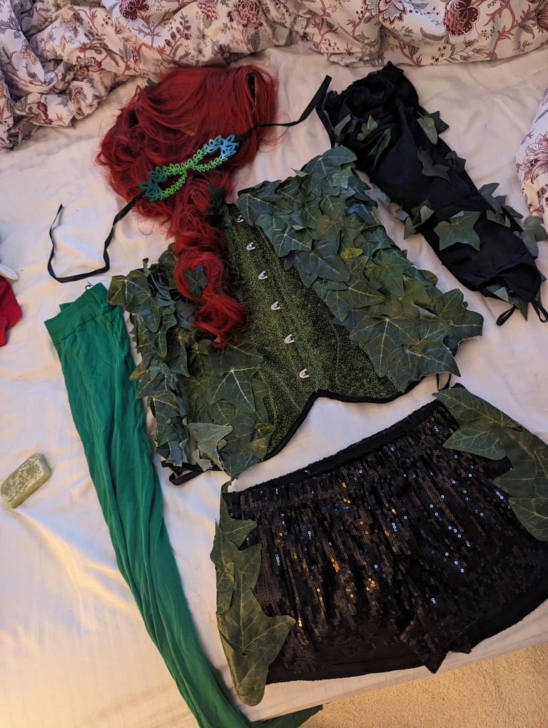 Included corset, tights, gloves, mask, wig, nails, shorts and an undershirt. Also a bag of extra leaves if you would like to add anything to the costume.