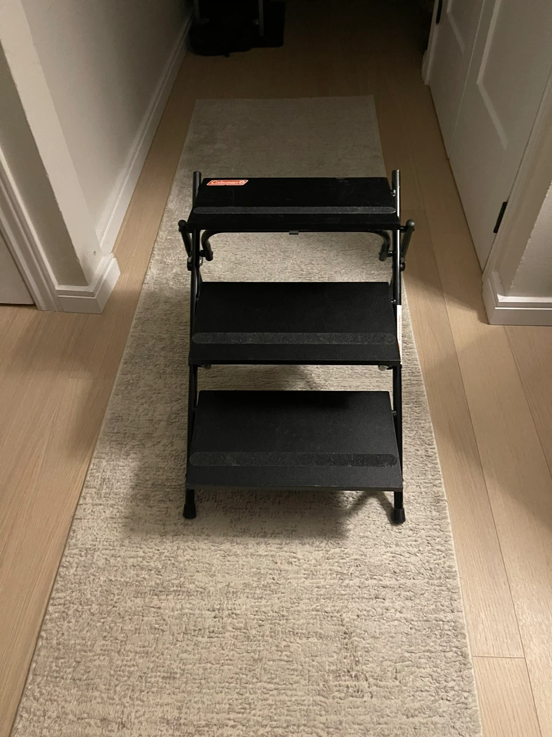 Coleman 3-step pet stairs/ramp. Black with non-slip treads, sturdy metal frame. Can be used as stairs or a ramp. Great for helping pets get into the car or onto furniture! Folds for easy storage. Great condition!