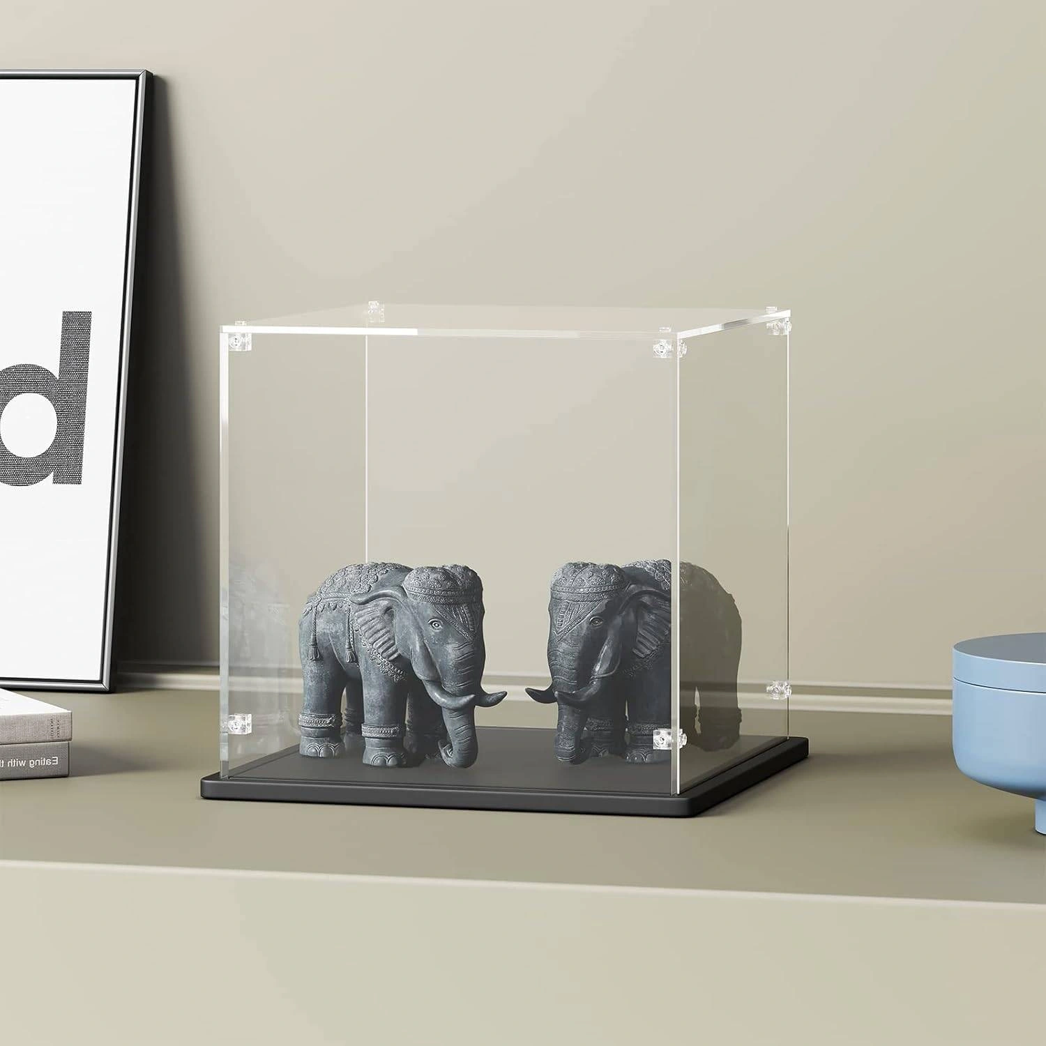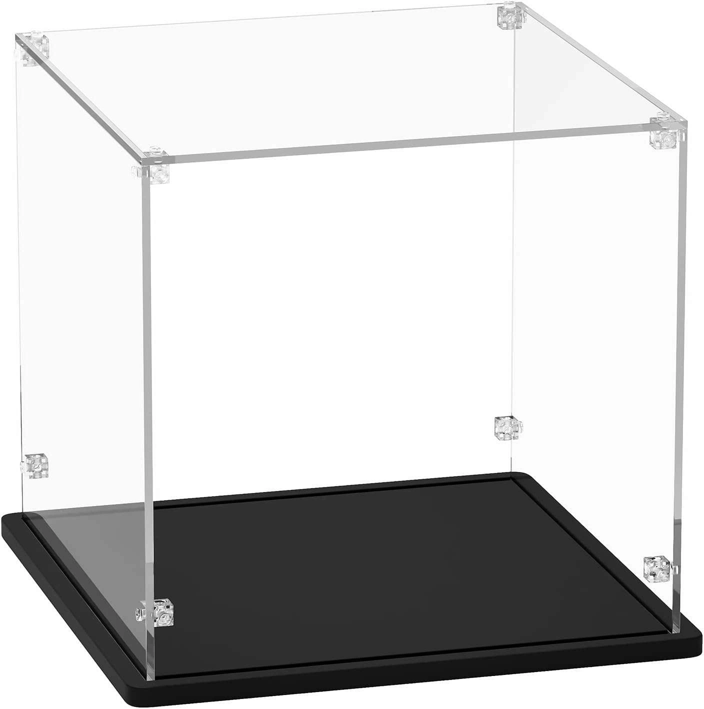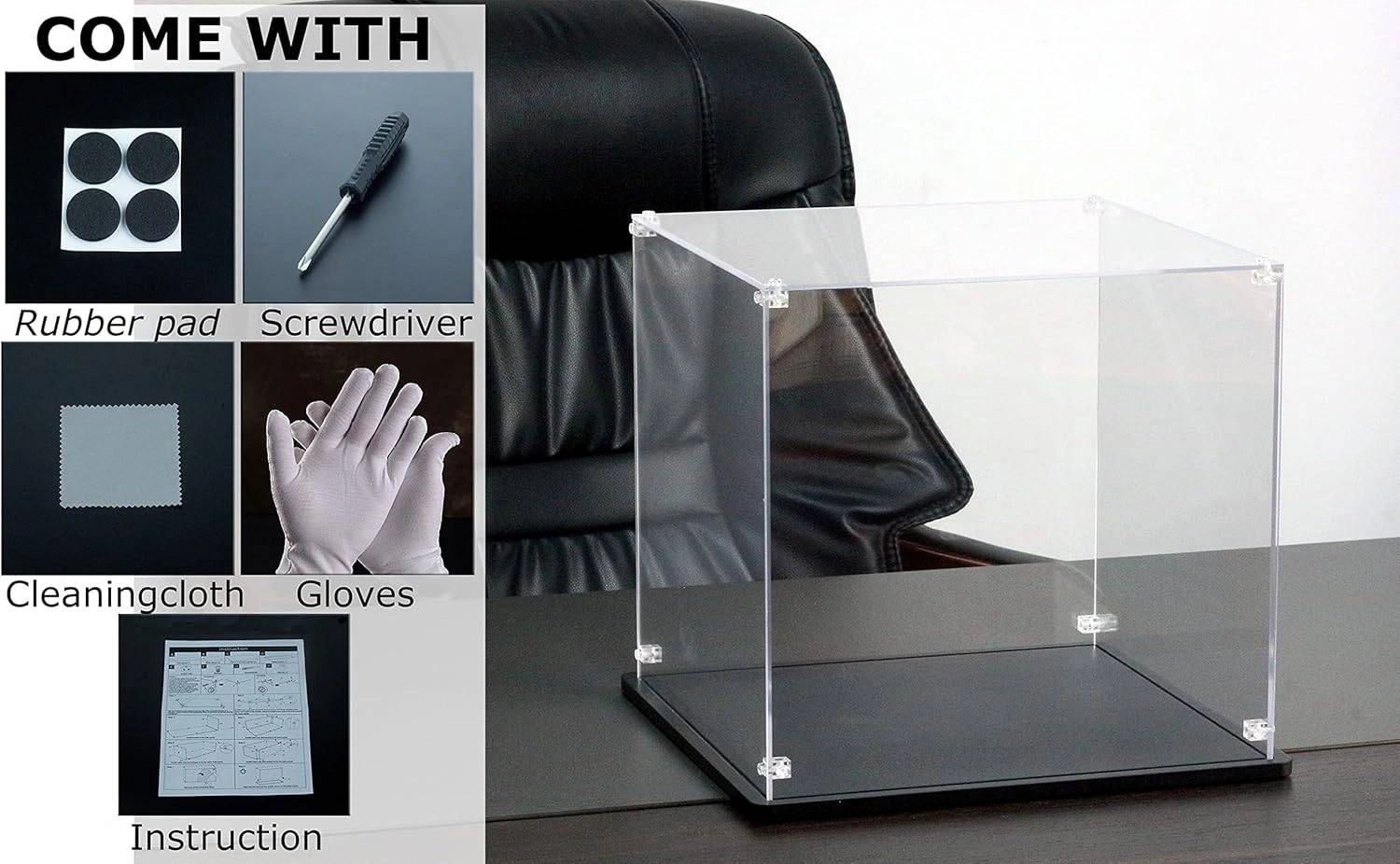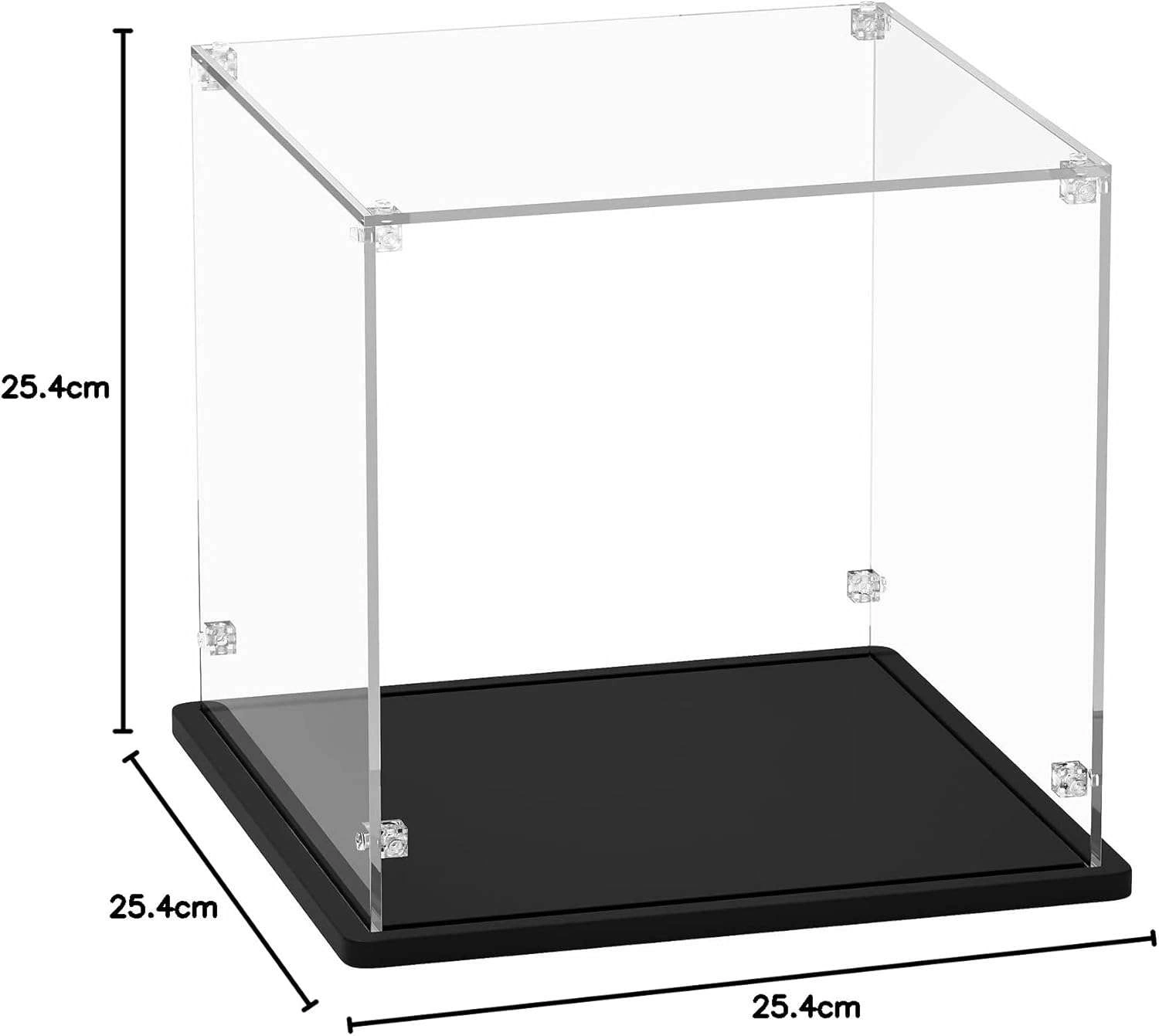 This clear acrylic display case is perfect for showcasing your collectibles or figurines! It comes with a black base and is designed to be crystal clear, with smooth edges and high reliability under UV light. It's also good resistant to toscratch, ensuring your items stay protected while on display.