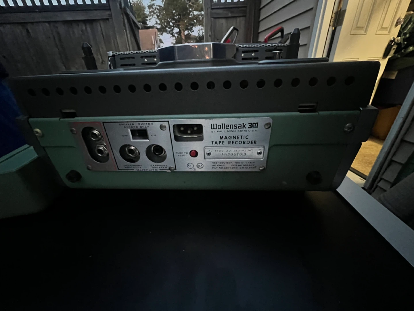 Selling a Wollensak 3M Model 1520 magnetic tape recorder. It comes with its original case. This is an audio/visual tool.