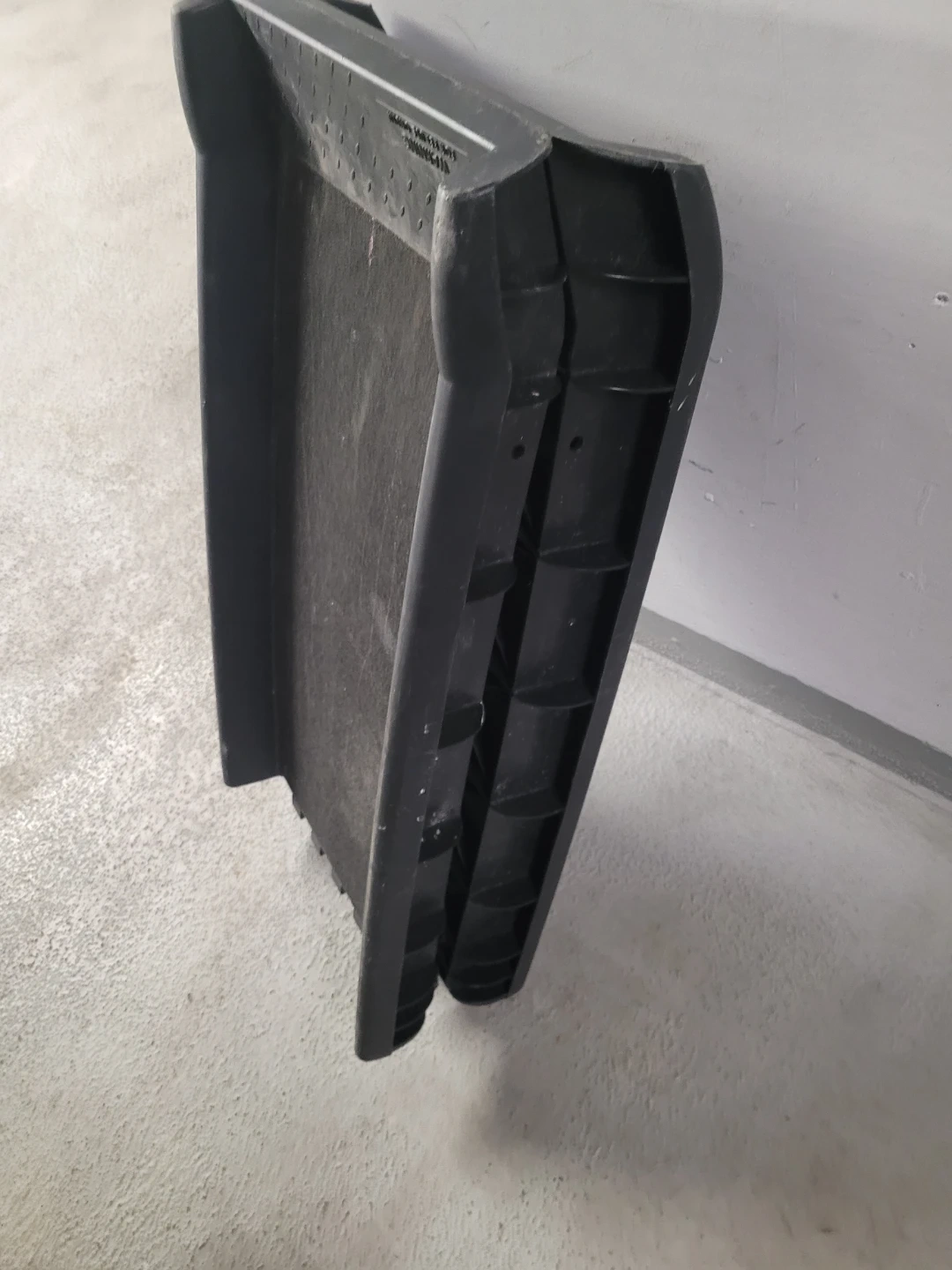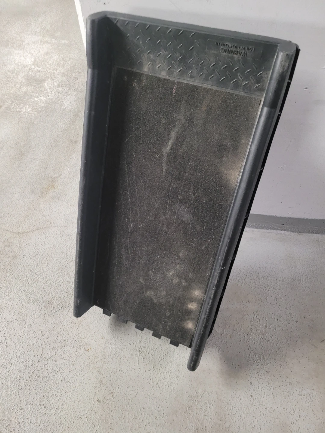 This is a pet ramp designed to help smaller or older pets access elevated areas. It's made of durable plastic with a textured surface for grip. The ramp's compact design makes it easy to store. It's useful for pets who have trouble jumping.