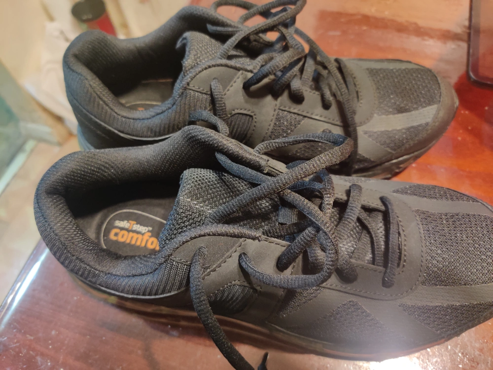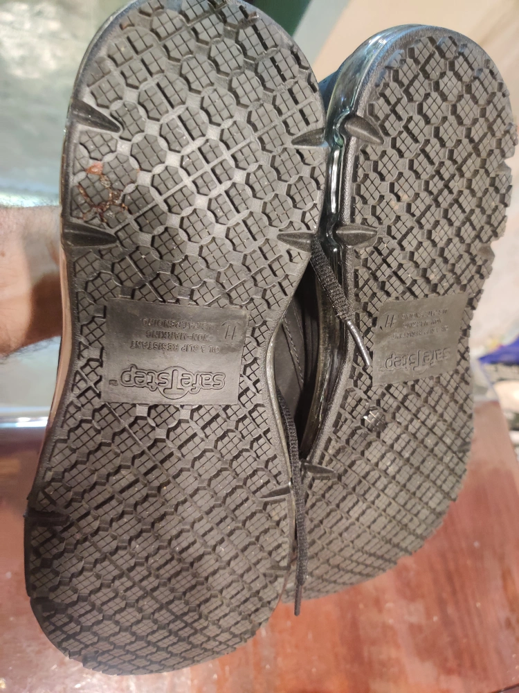 Selling a pair of Safe Step work shoes in black, size 11. They're oil and slip resistant, perfect for work environments where safety is a priority! The soles have a good grip, ensuring stability. They're in good condition and ready for a new owner