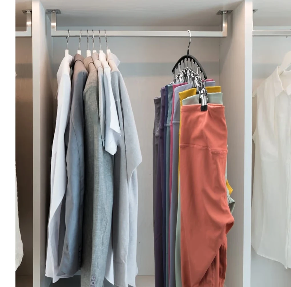 Each hanger features 10 sturdy clips with rubber tips to securely hold leggings, pants, skirts, or more—without slipping or damage.