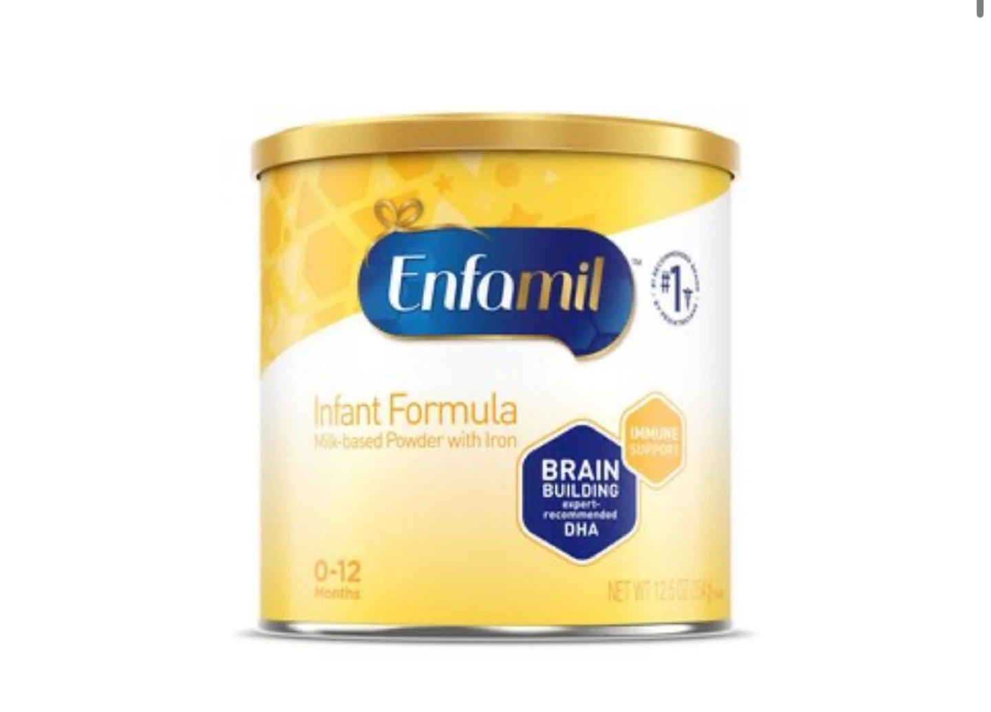 Selling a can of Enfamil Infant Formula, perfect for babies aged 0-12 months! It's a milk-based powder with iron and expert-recommended DHA for brain building. It also supports the immune system. Net weight is 12.5 oz.